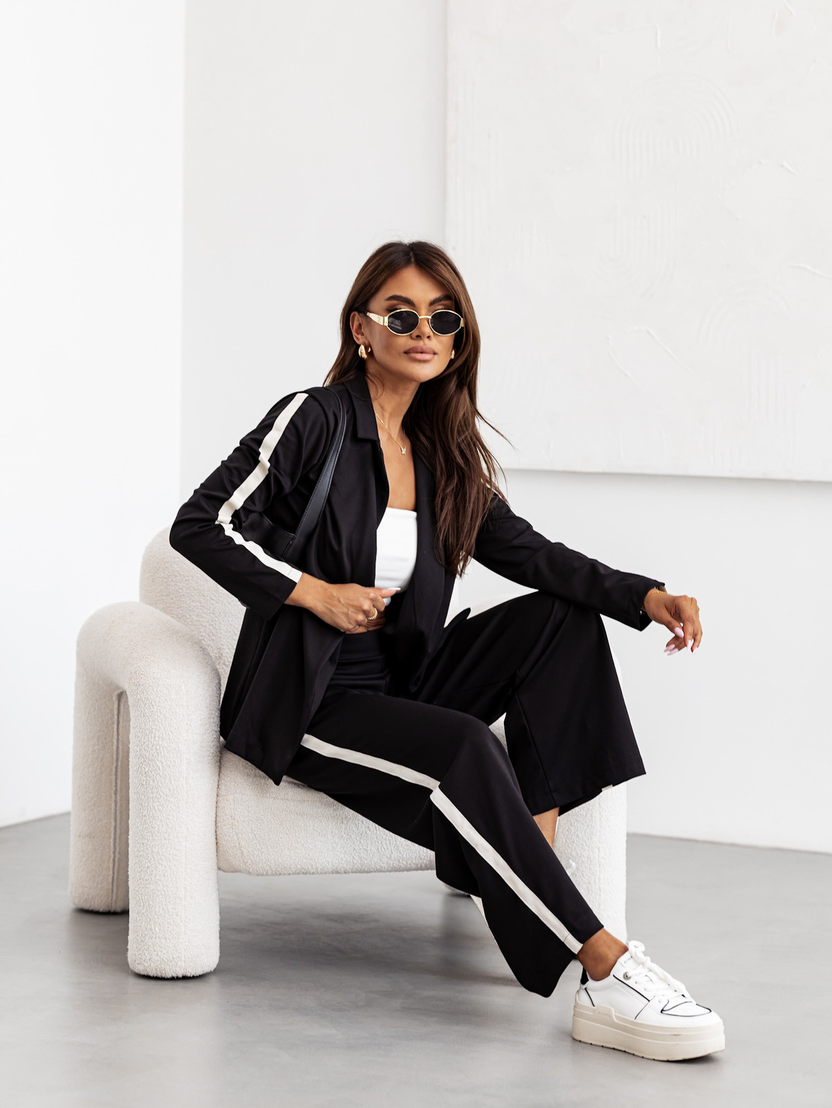 KOMPLET Z SZWEROKIMI SPODNIAMI+MARYNARKA- CZARNY