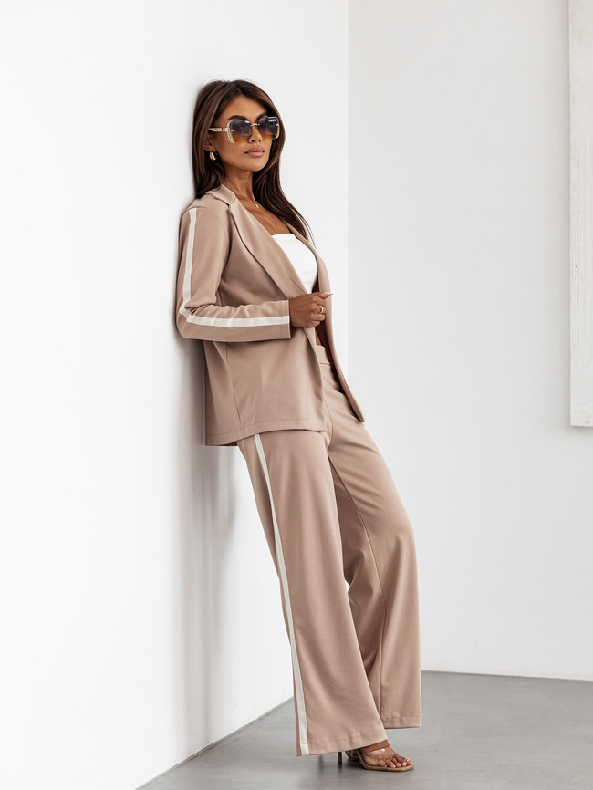 KOMPLET Z SZWEROKIMI SPODNIAMI+MARYNARKA- BEŻOWY
