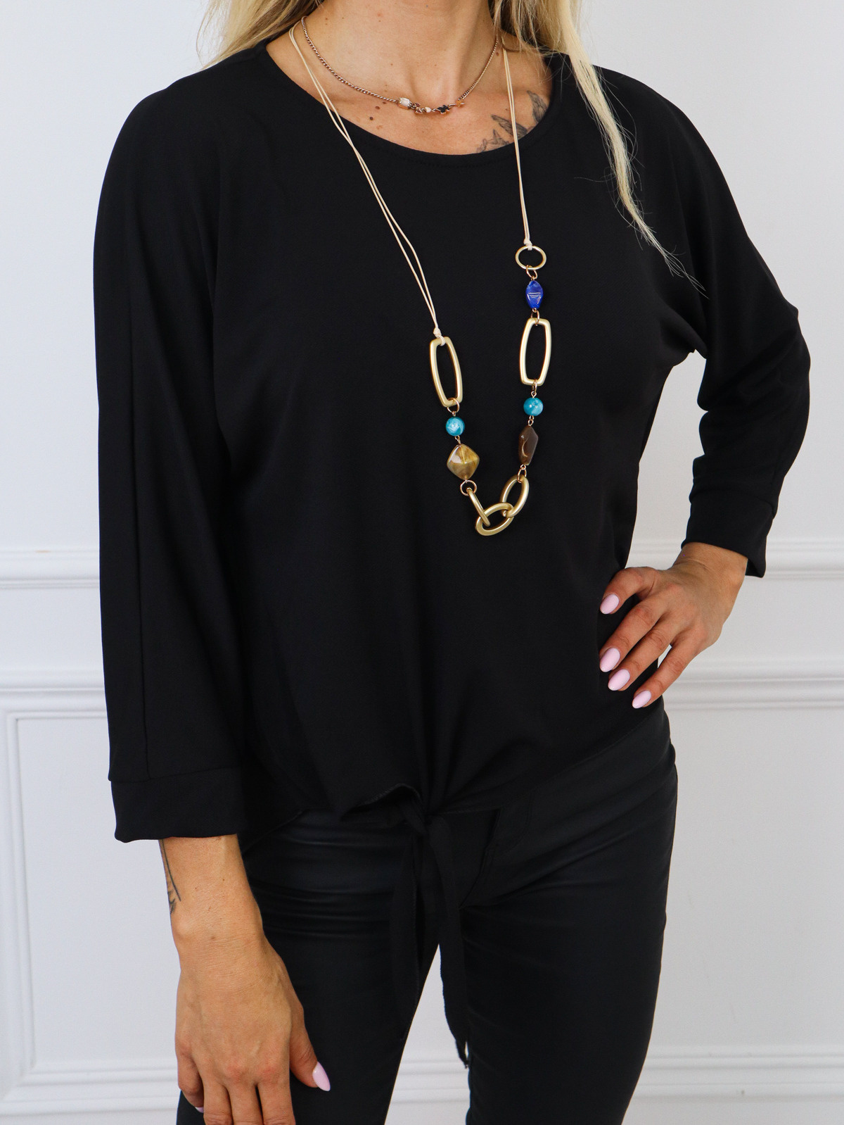 BLUZKA ONE SIZE NIETOPERZ Z WIAZANIEM NA BOKU + WISIOREK-CZARNA