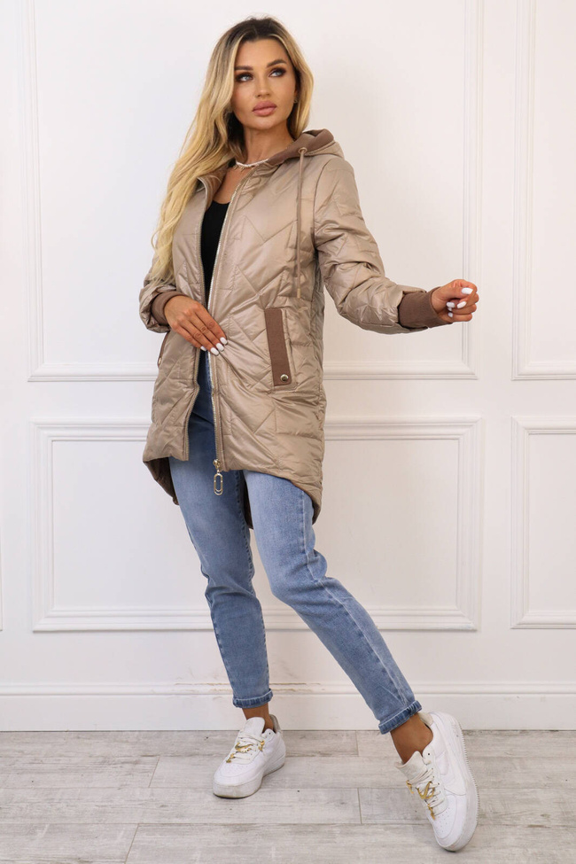 DŁUGA ASYMETRYCZNA KURTKA PRZEJŚCIOWA-BEŻOWA