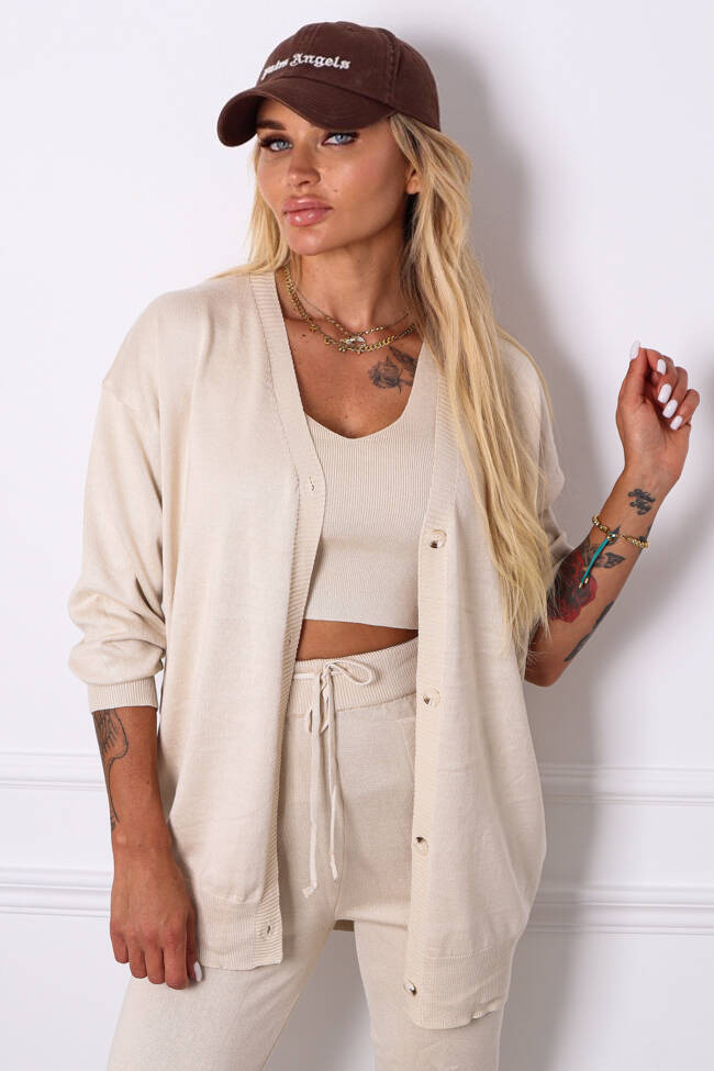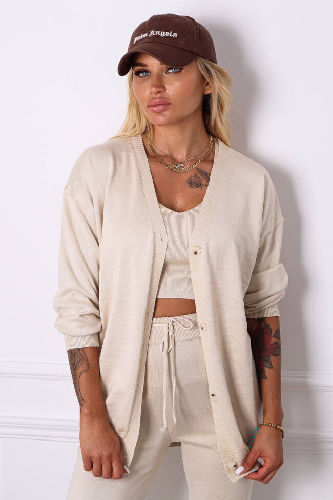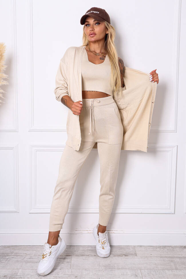KOMPLET DZIANINOWY SPODNIE+ TOP+ KARDIGAN- BEŻOWY