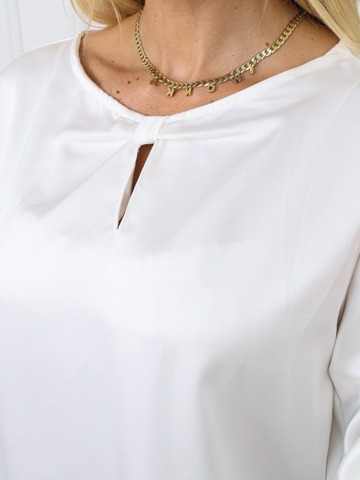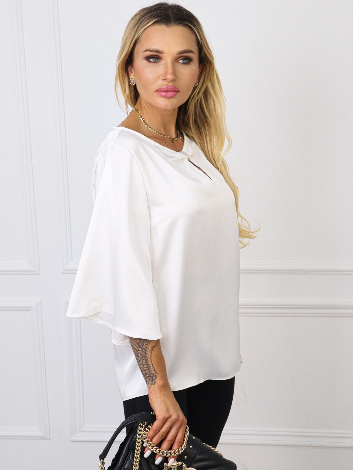 BLUZKA SATYNOWA Z ROZSZERZANYMI RĘKAWAMI- BIAŁA