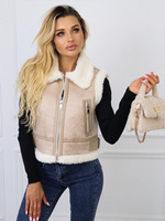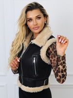 KRÓTKA KAMIZELKA BEZRĘKAWNIK Z KOŻUSZKIEM- CZARNA