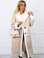 PŁASZCZ Z FUTERKIEM I OZDOBNYMI PRZESZYCIAMI- BEŻOWY