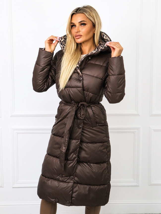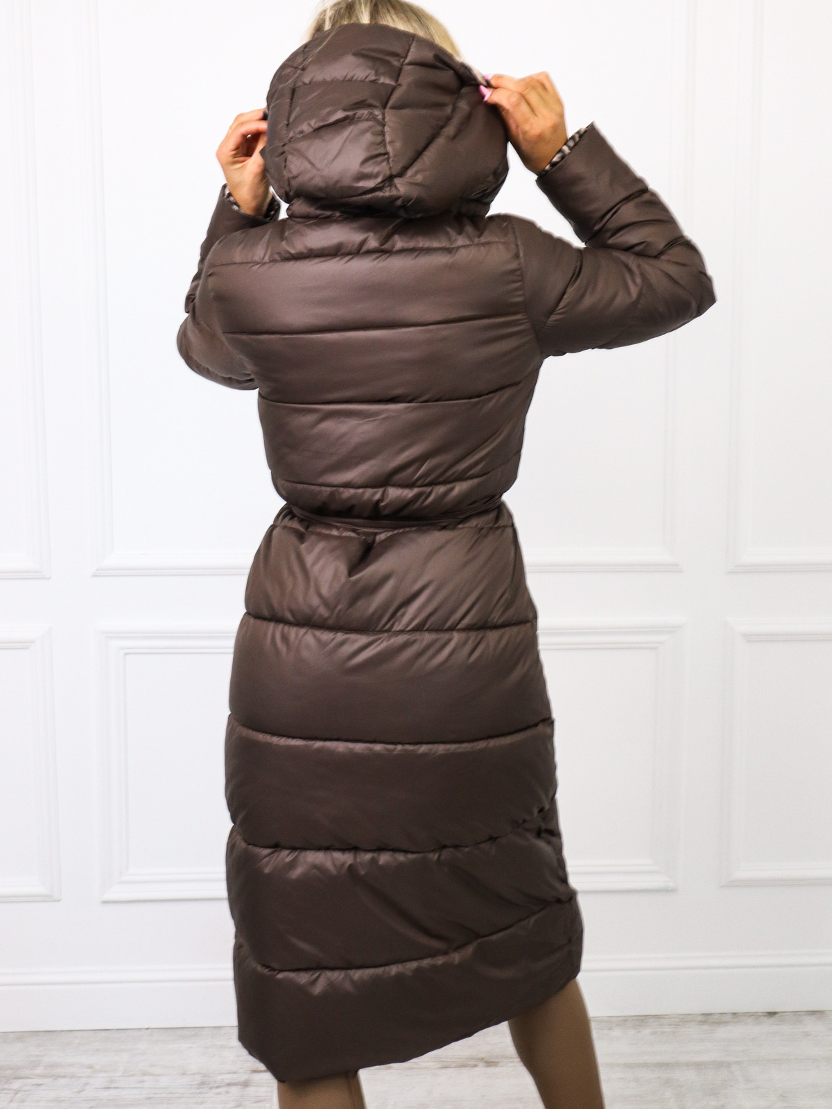 DWUSTRONNY PŁASZCZ PIKOWANY Z WIĄZANIEM W PASIE- BRĄZOWY