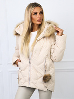 KURTKA PIKOWANA Z FUTERKIEM I OZDOBNYM BRELOKIEM -JASNY BEŻ