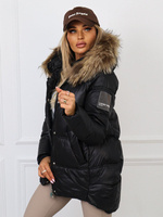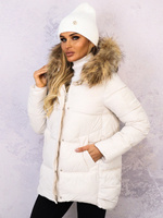 KURTKA ASYMETRYCZNA Z NASZYWKĄ NA RĘKAWIE I FUTERKIEM- ECRU