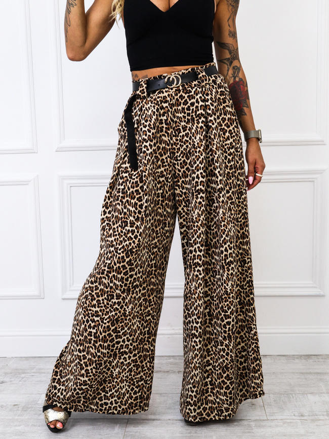 MATERIAŁOWE SPODNIE Z SZEROKIMI NOGAWKAMI+ PASEK- PANTERKA