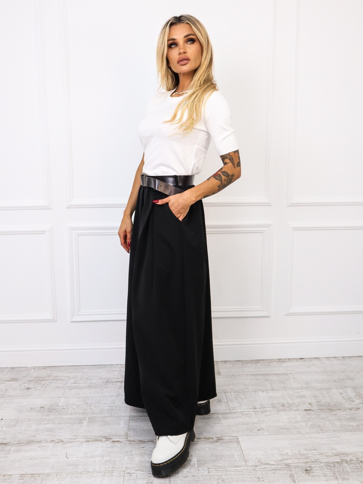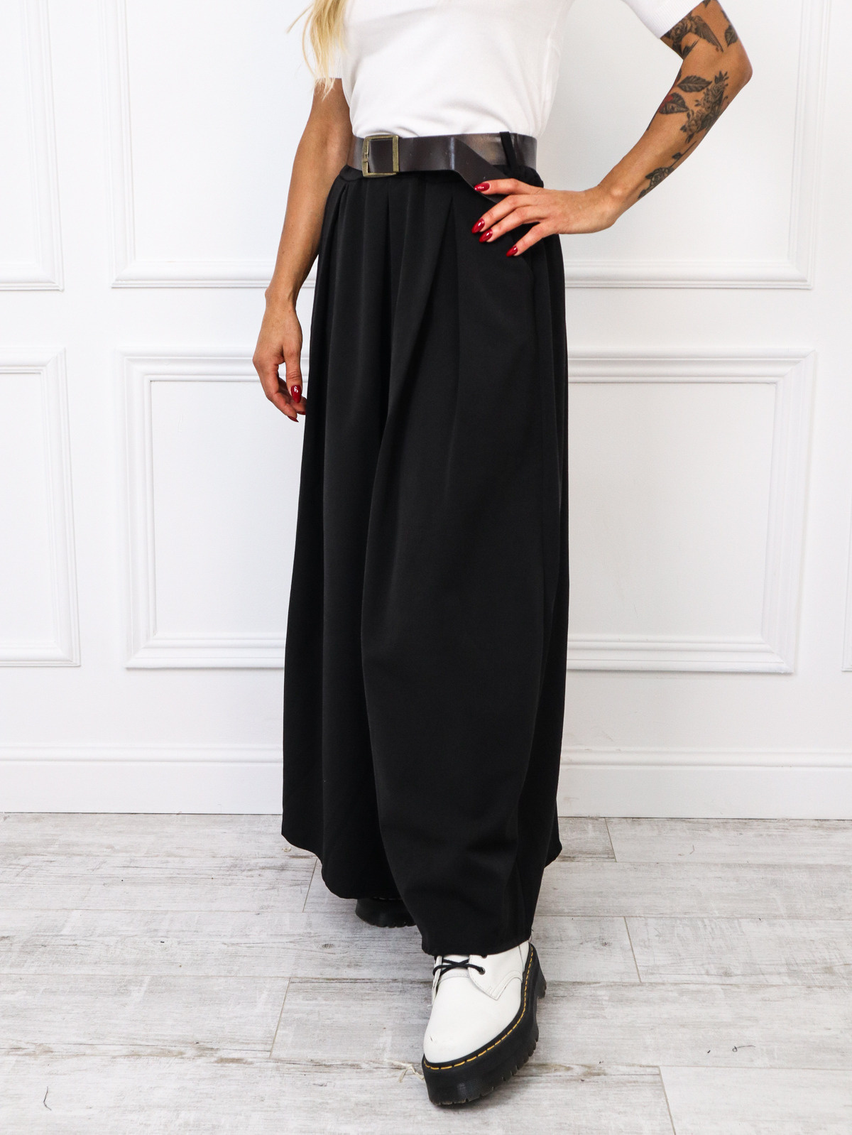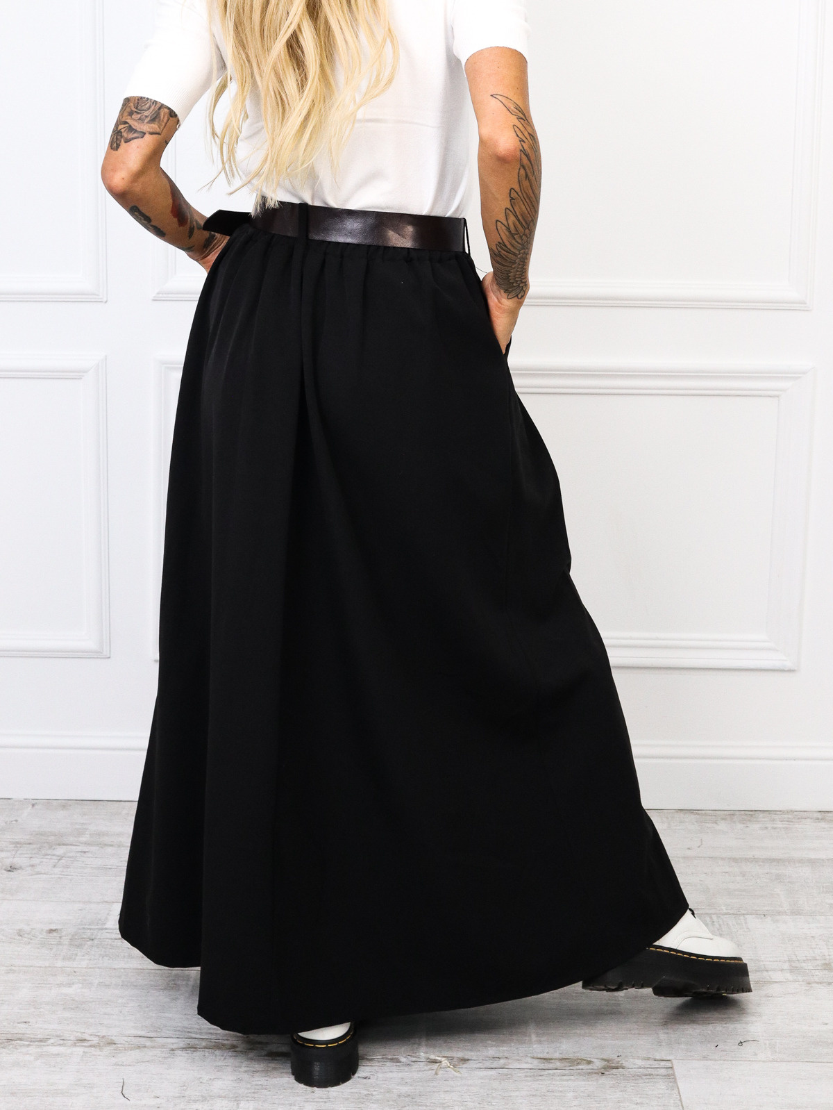 MATERIAŁOWA SPÓDNICA MIDI Z KIESZENIAMI+ PASEK- CZARNA