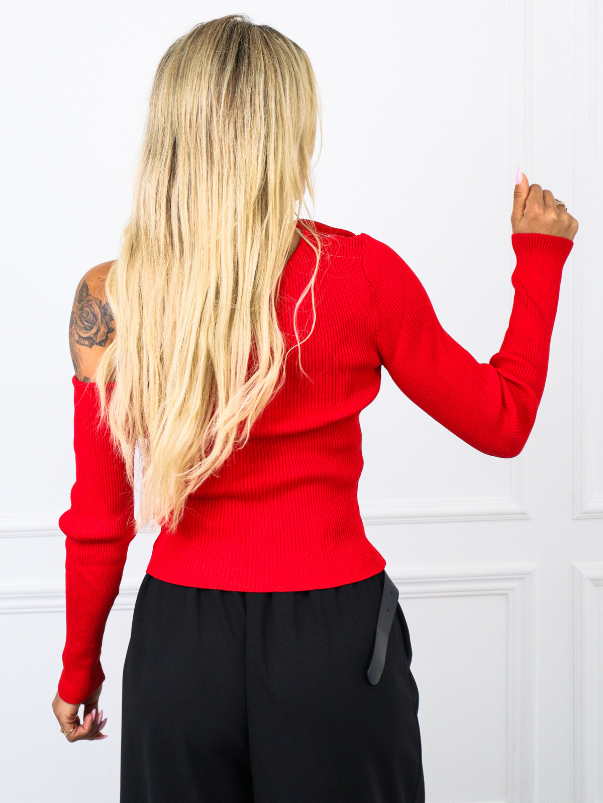 BLUZKA PRĄŻKOWANA NA JEDNO RAMIE Z DUŻYM KWIATEM- CZERWONA