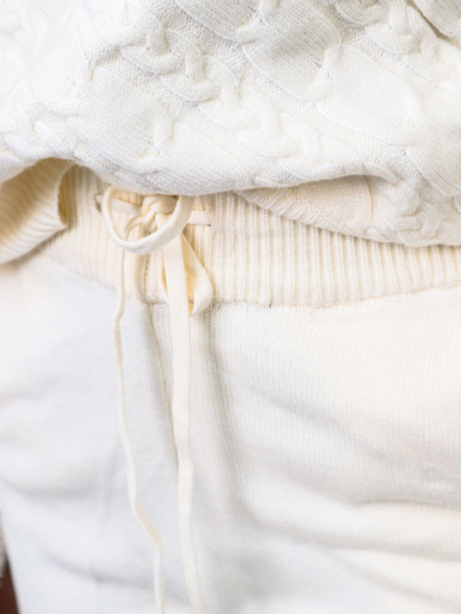 KOMPLET DZIANINOWY SWETER+ SPODNIE- BIAŁY