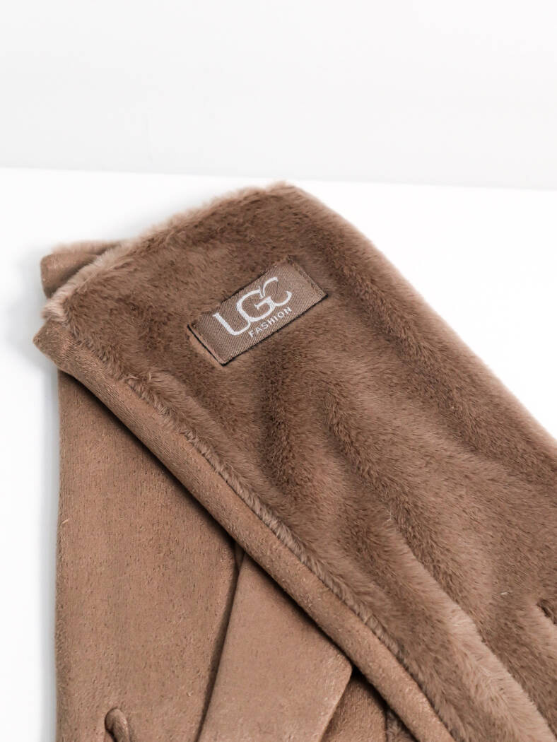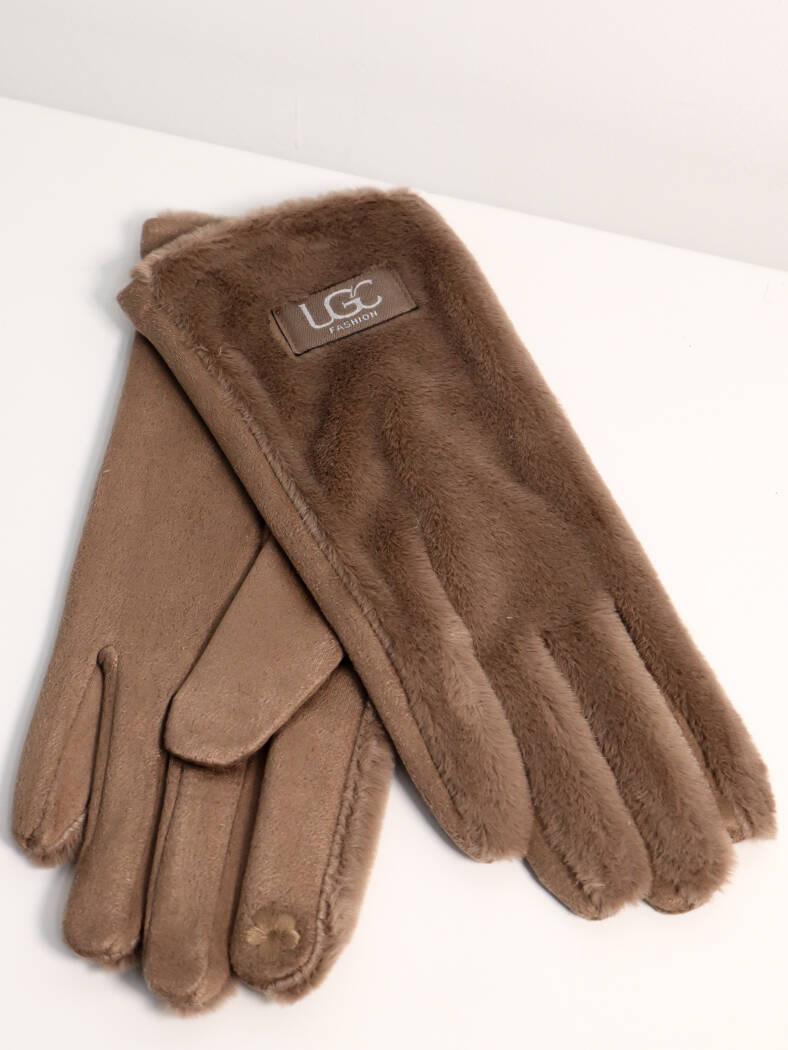 RĘKAWICZKI ZAMSZOWE Z FUTERKIEM PIĘCIOPALCZASTE Z LOGIEM LGC- BRĄZOWE