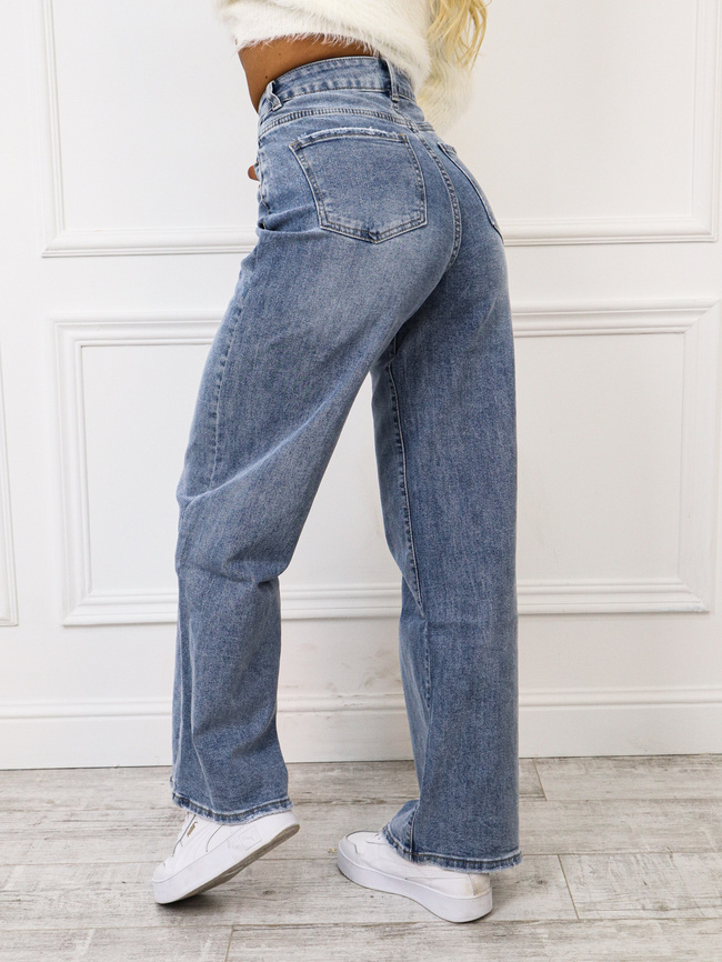 SPODNIE JEANSOWE Z SZEROKĄ NOGAWKĄ I WYSOKIM STANEM- NIEBIESKIE