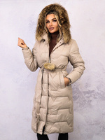 DŁUGA PIKOWANA KURTKA Z FUTERKIEM- BEŻOWA
