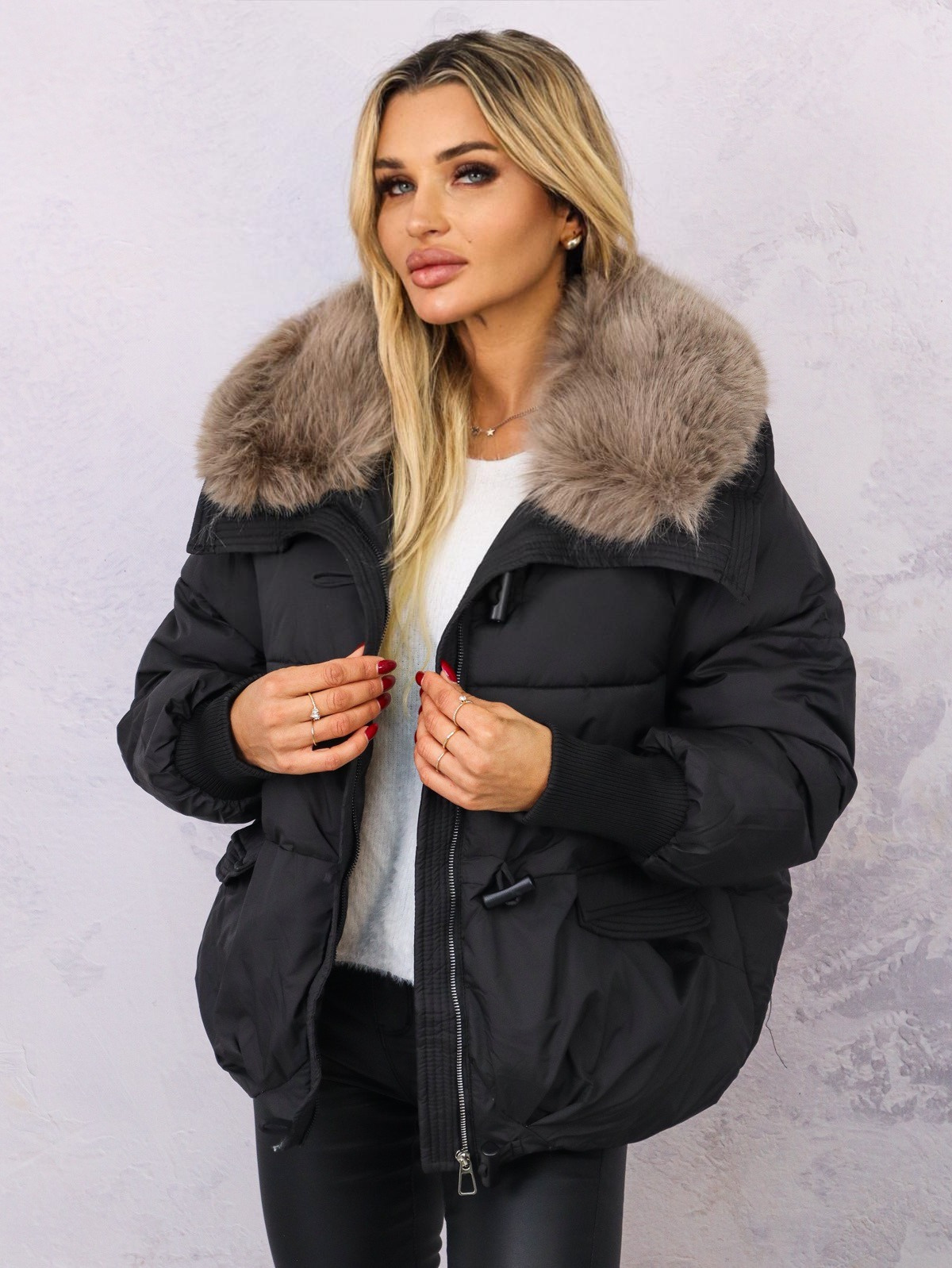 KURTKA OVERSIZE Z FUTERKIEM- CZARNA
