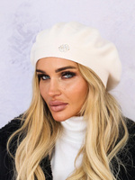 BERET DAMSKI Z BROSZKĄ- EKRI