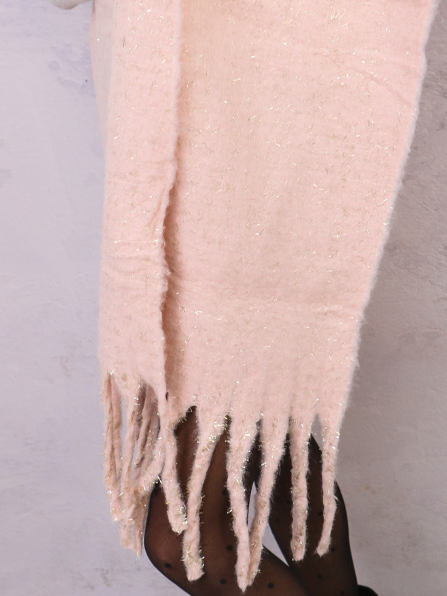 MIĘKKI ZIMOWOWY SZALIK Z FRĘDZLAMI- RÓŻOWY