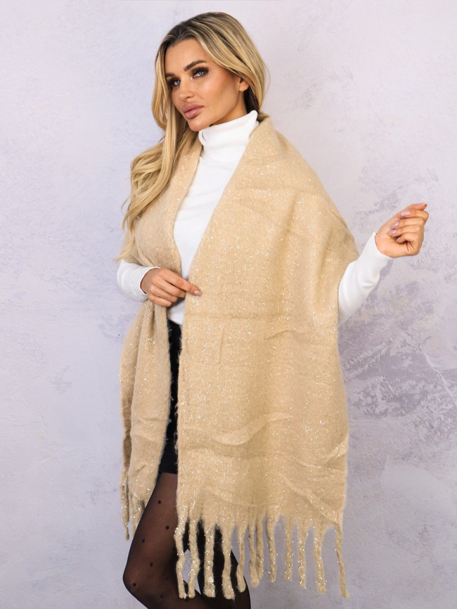 MIĘKKI ZIMOWOWY SZALIK Z FRĘDZLAMI- BRĄZOWY
