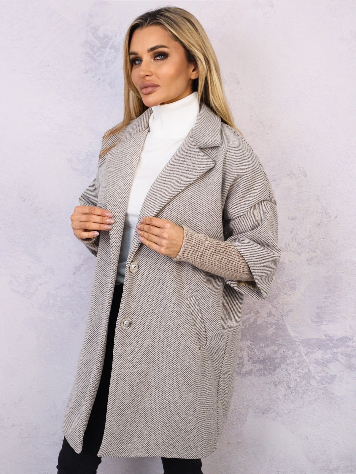 PŁASZCZ OVERSIZE Z DZIANINOWYMI RĘKAWAMI- BRĄZOWY