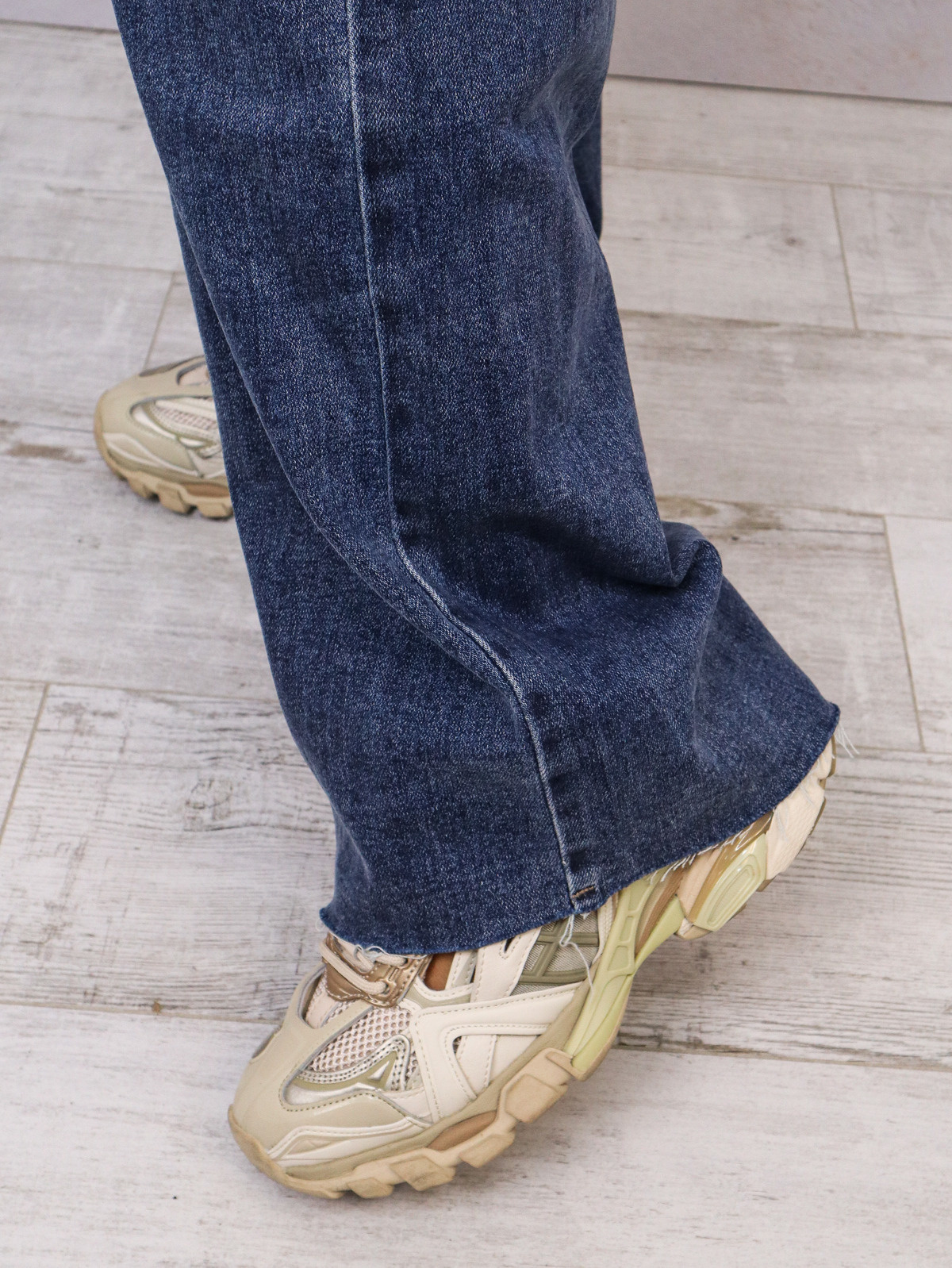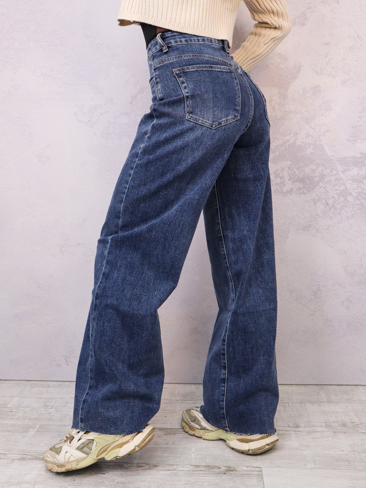 SPODNIE JEANSOWE Z SZEROKIMI NOGAWKAMI- GRANATOWE