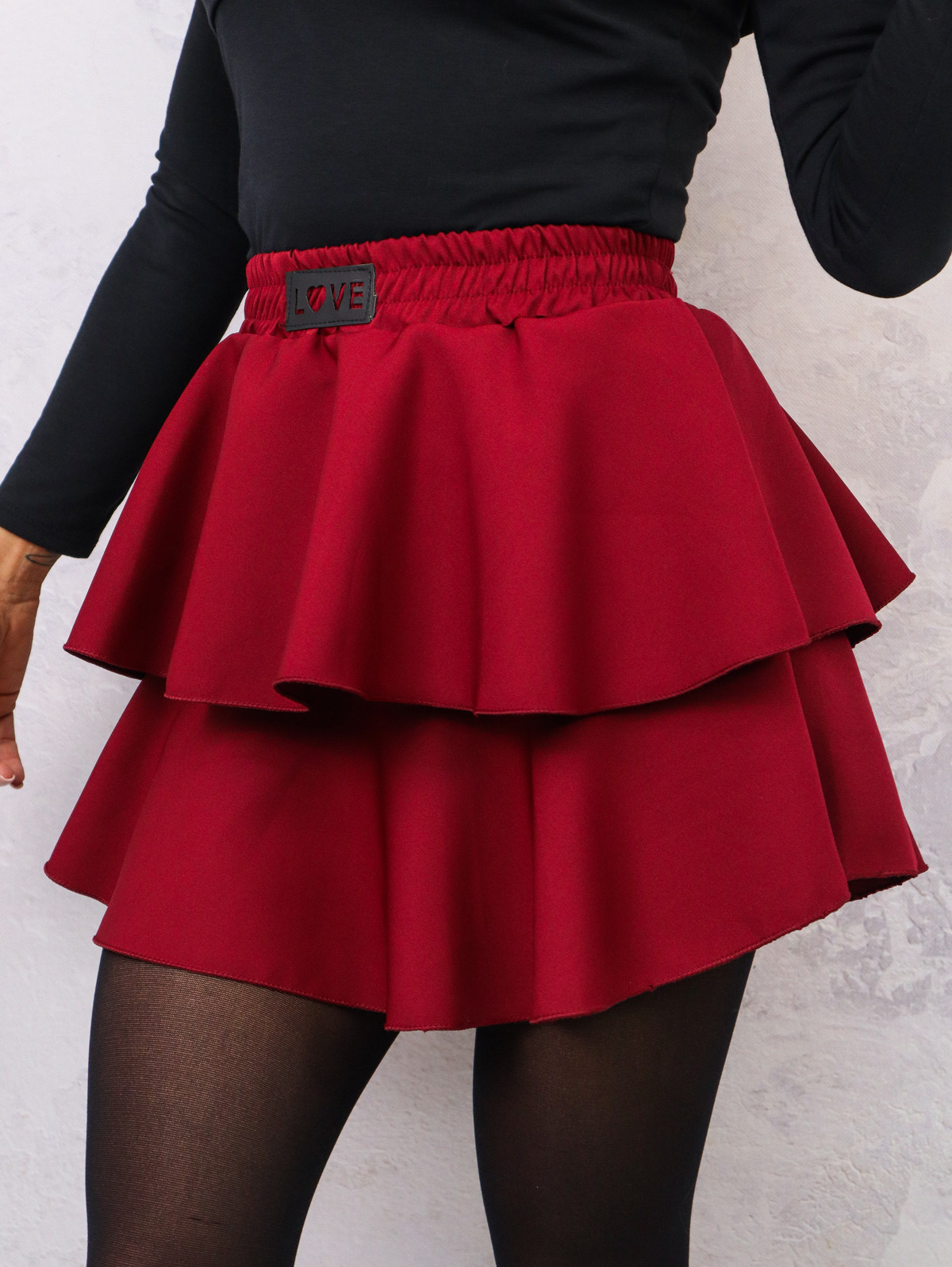 SPÓDNICO-SPODENKI Z FALBANĄ I OZDOBNĄ NASZYWKĄ- BORDOWE