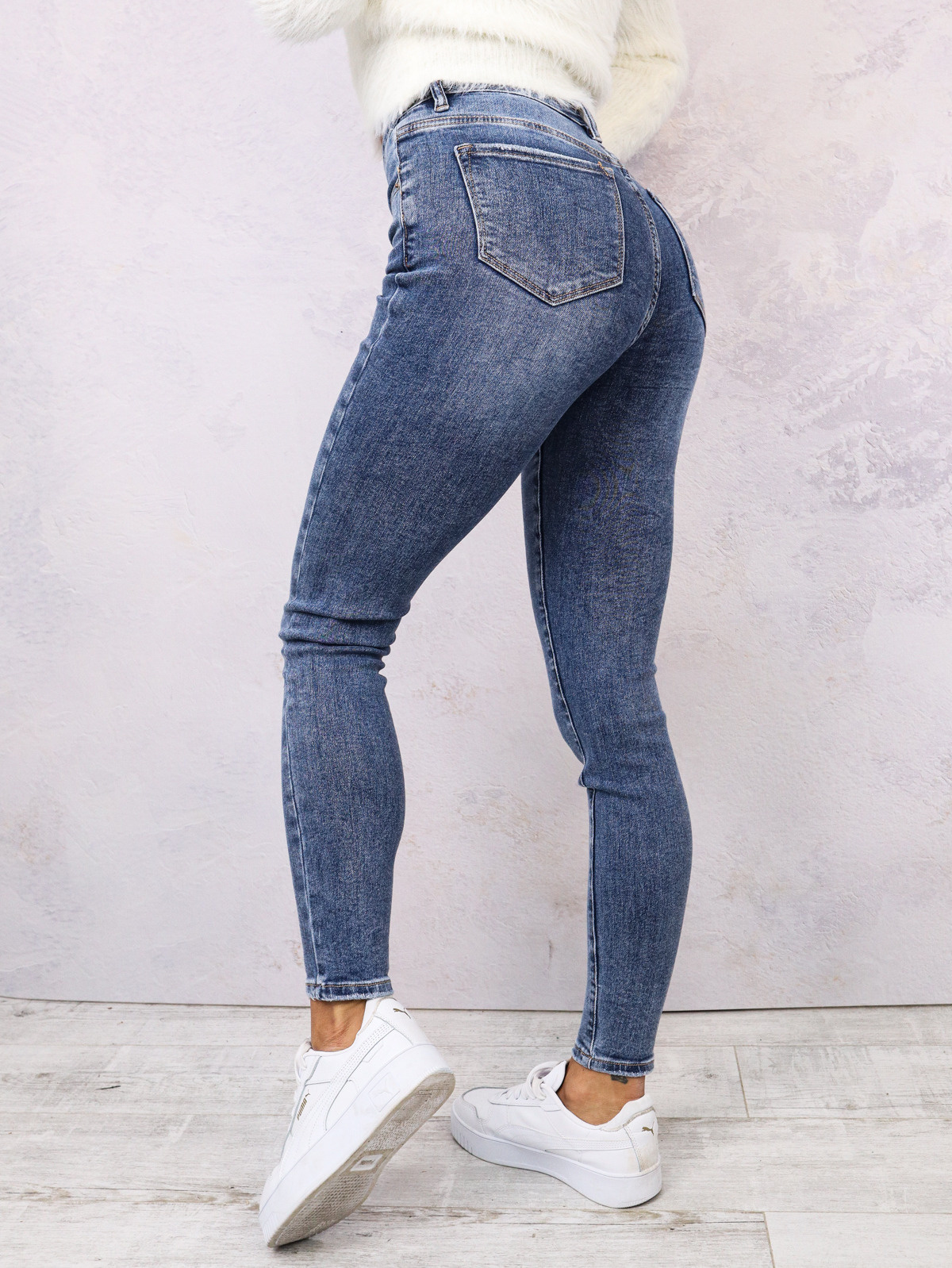 SPODNIE JEANSOWE Z WYSOKIM STANEM - NIEBIESKIE