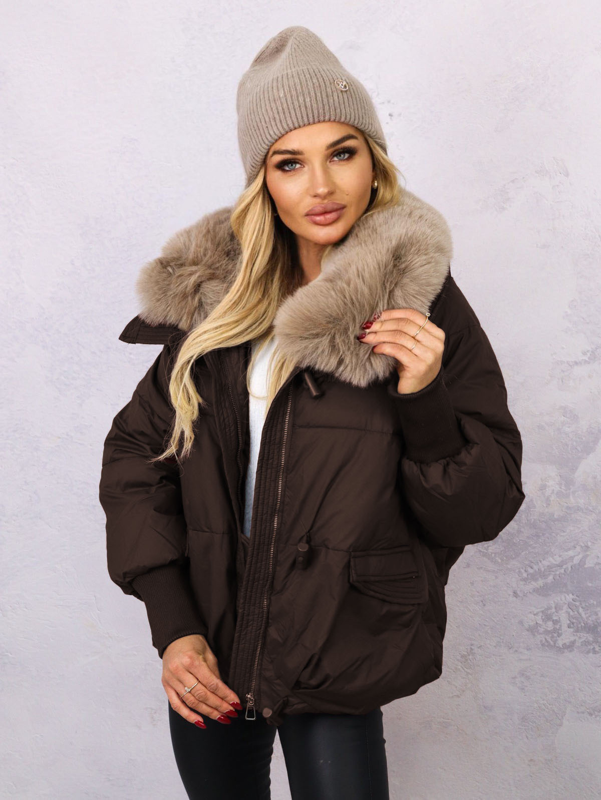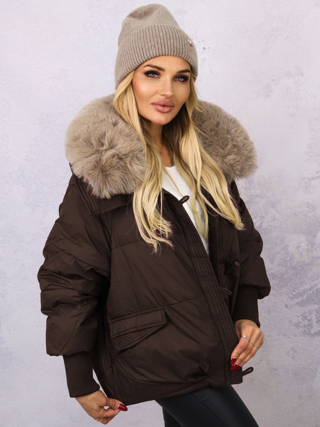 KURTKA OVERSIZE Z FUTERKIEM- CZEKOLADOWA