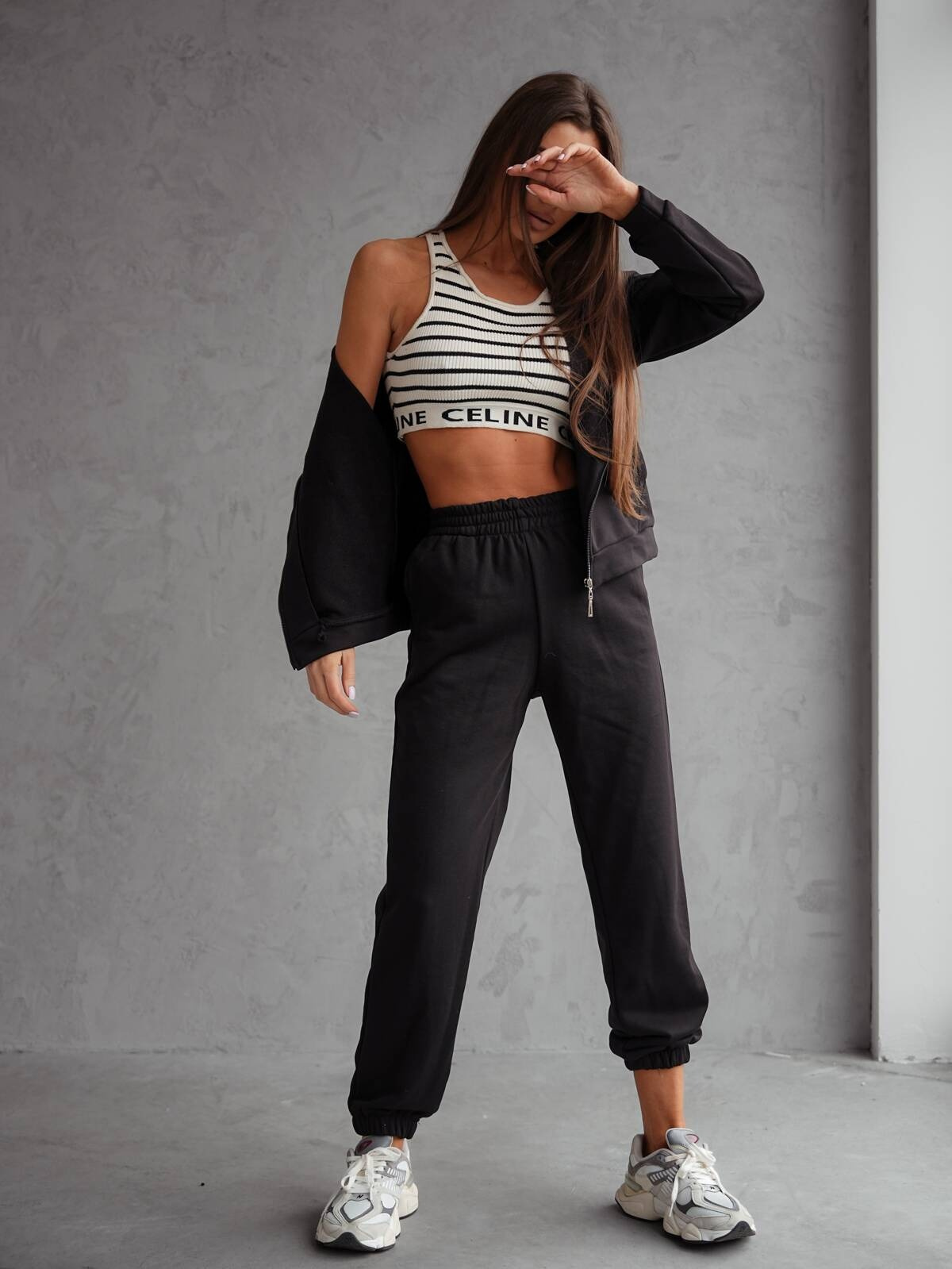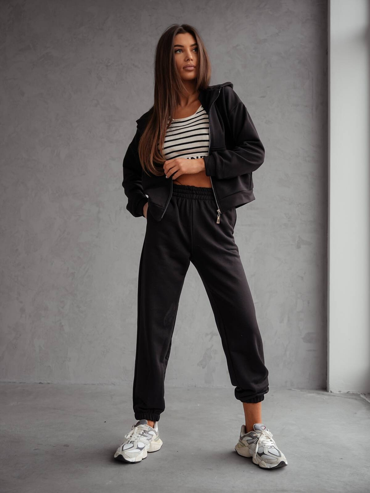 BAWEŁNIANY KOMPLET DRESOWY BLUZA ROZPINANA+ SPODNIE- CZARNY