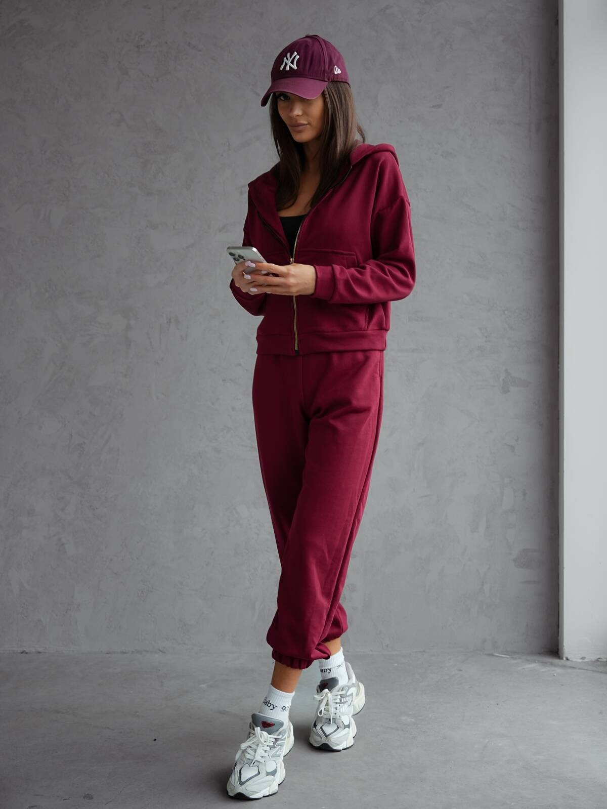 BAWEŁNIANY KOMPLET DRESOWY BLUZA ROZPINANA+ SPODNIE- BORDOWY