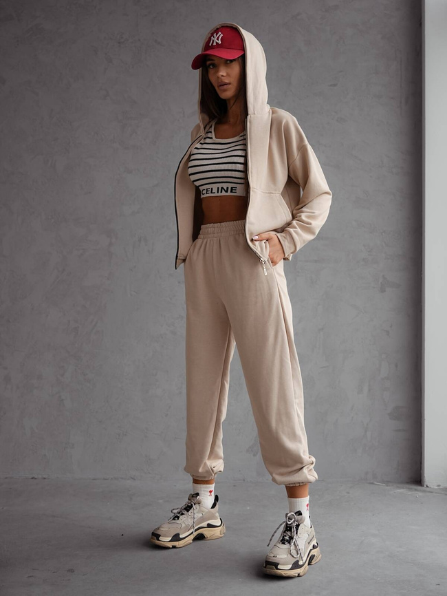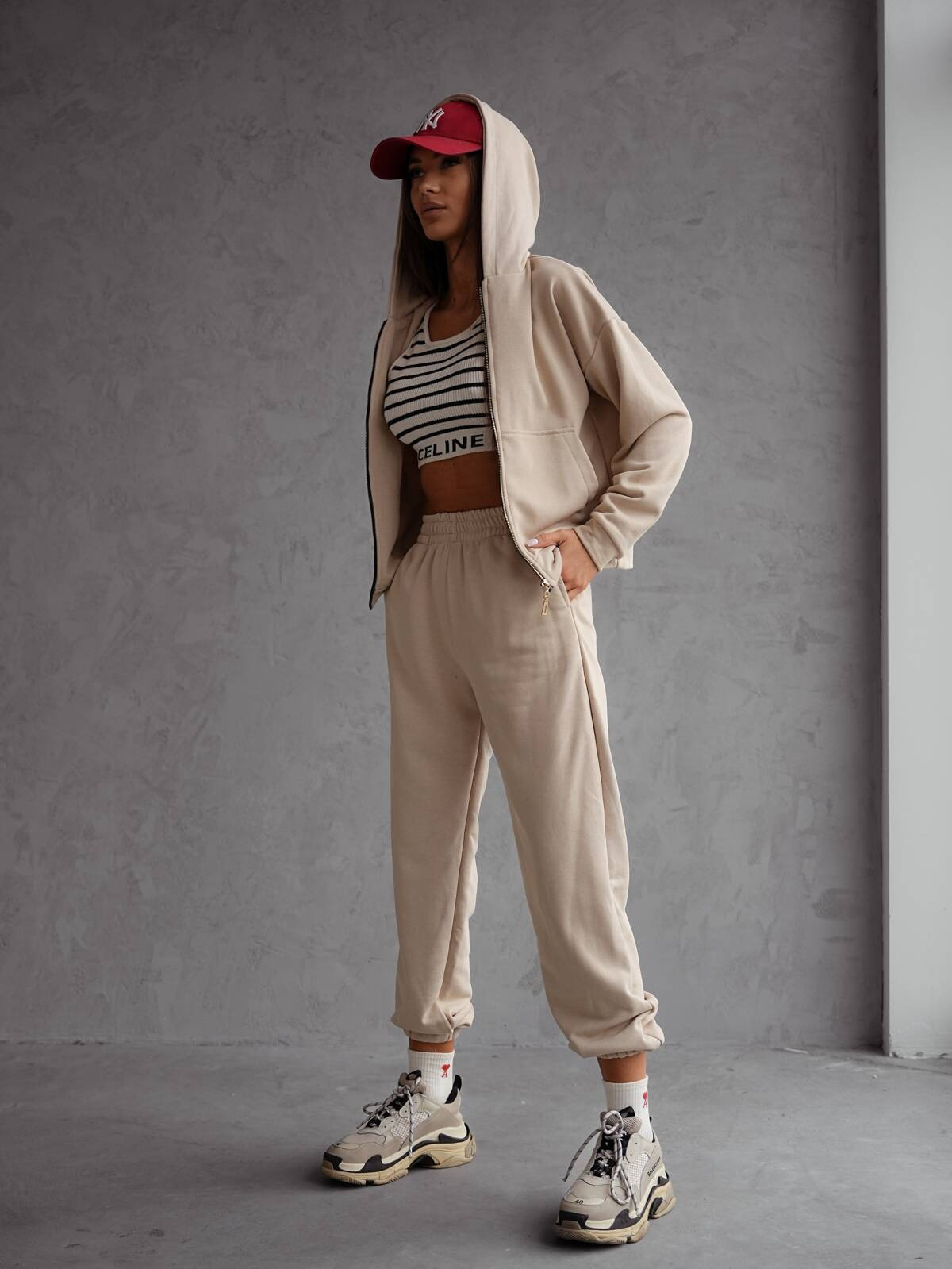 BAWEŁNIANY KOMPLET DRESOWY BLUZA ROZPINANA+ SPODNIE- BEŻOWY