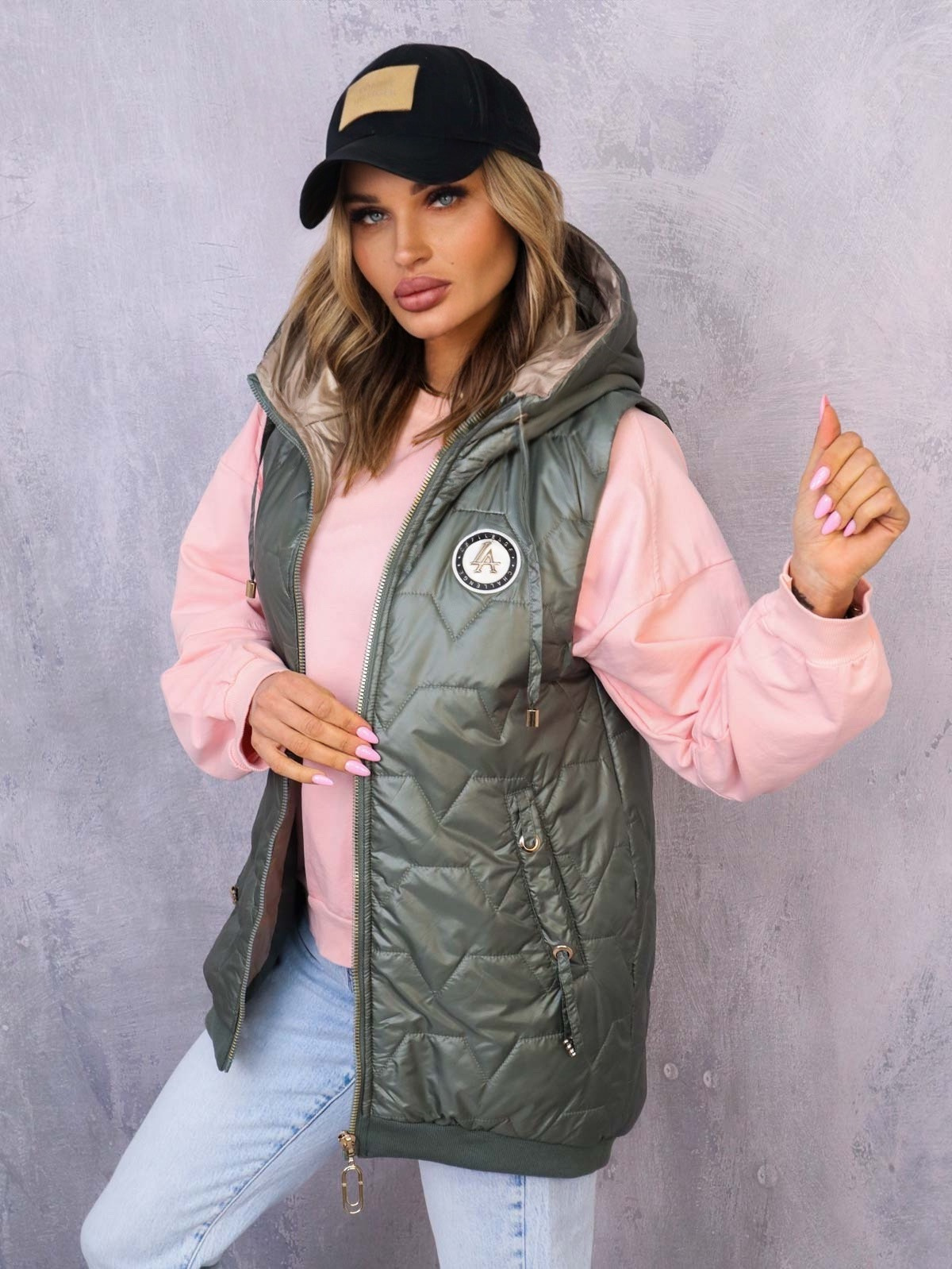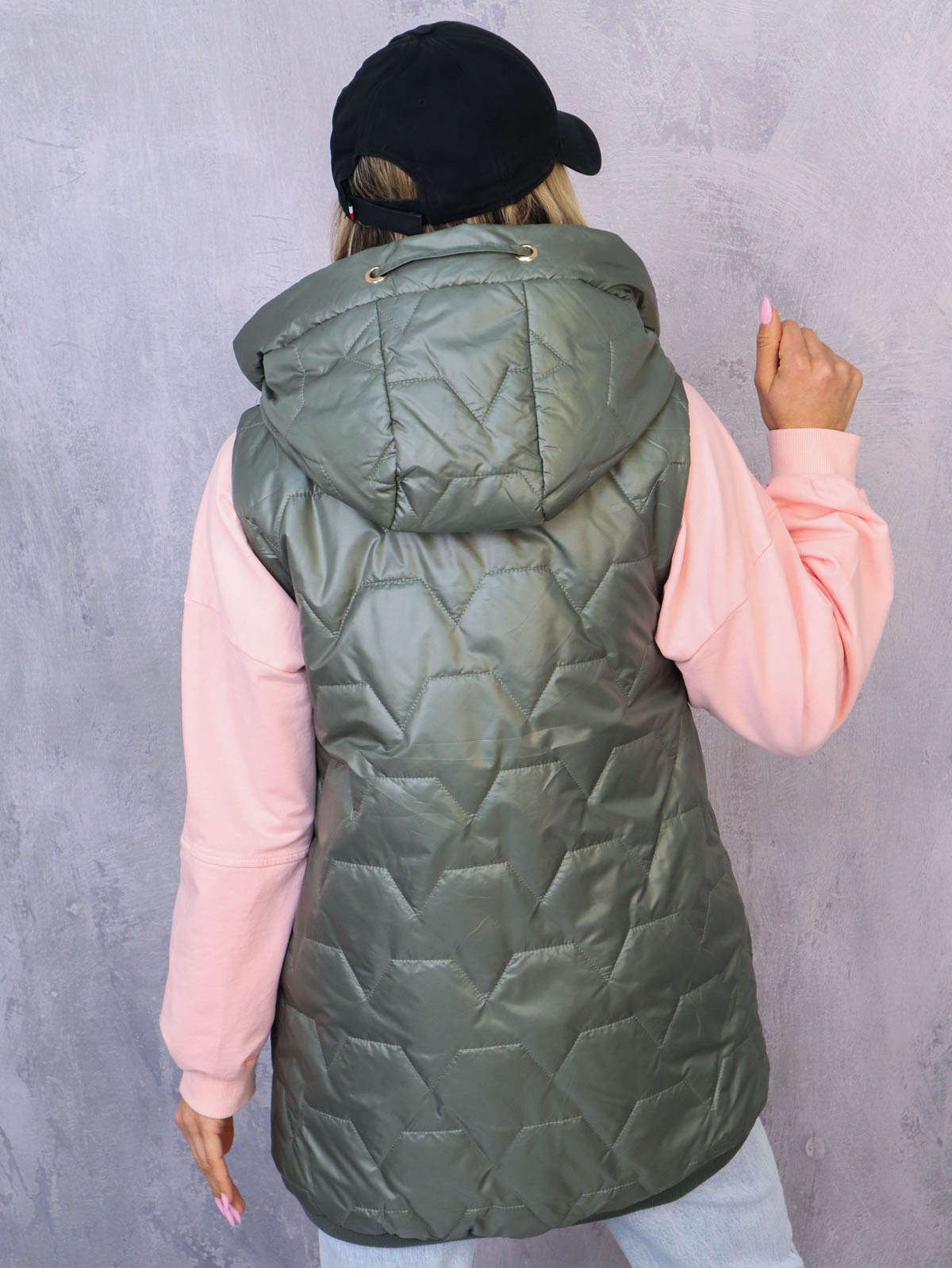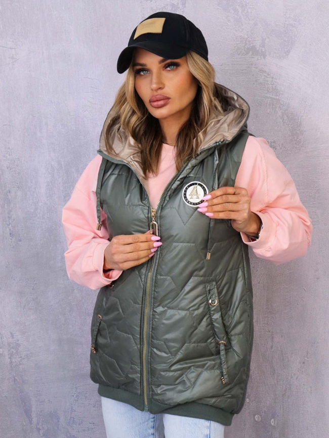ASYMETRYCZNA KAMIZELKA Z OZDOBNĄ NASZYWKĄ- ZIELONA