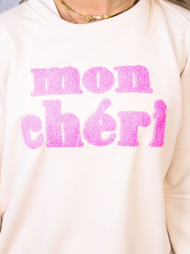 KOMPLET DRESOWY BLUZA Z NAPISEM+ SPODNIE- BEŻOWY