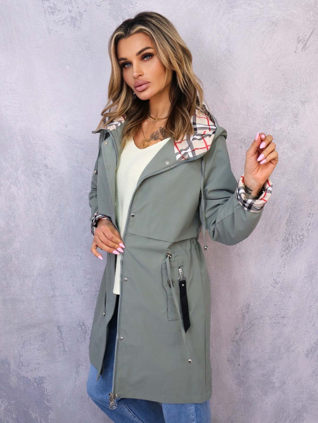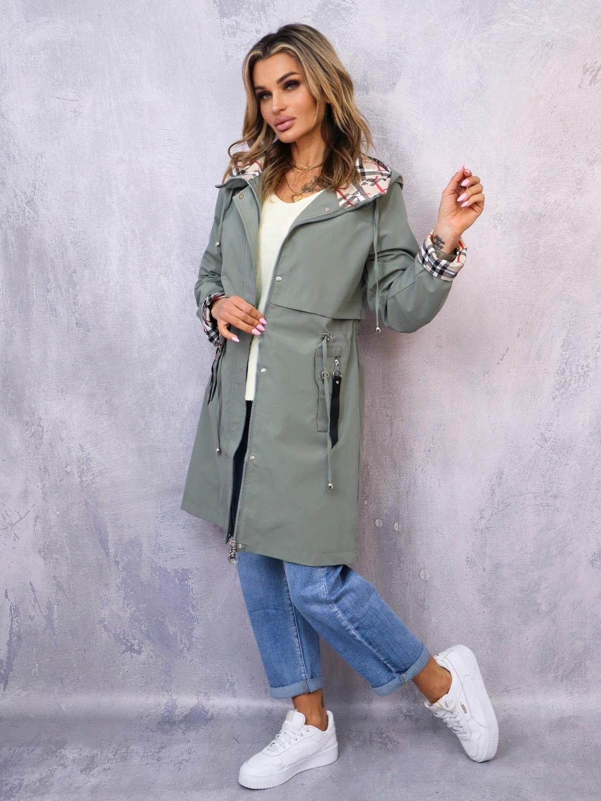 KURTKA PARKA Z KAPTUREM W KRATĘ- ZIELONA