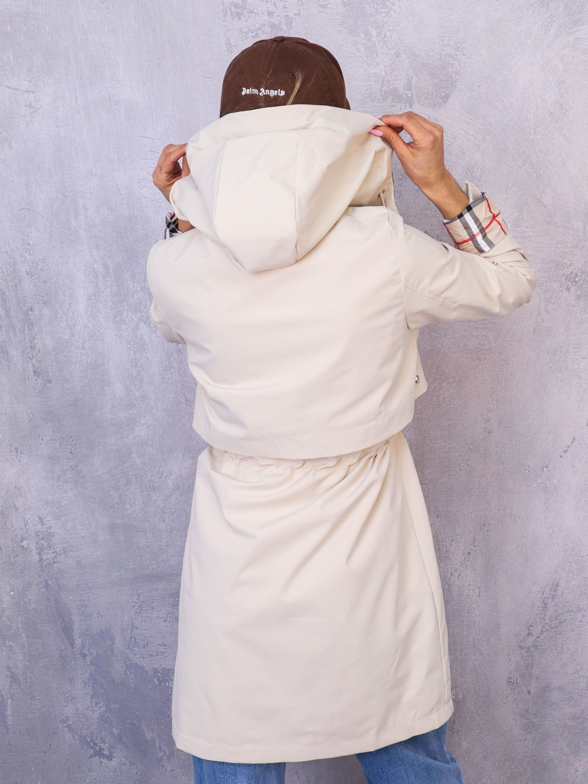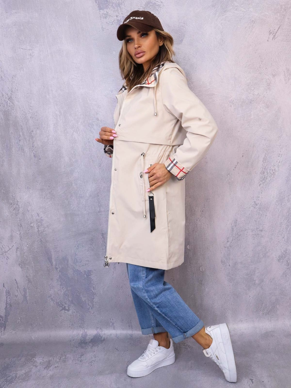 KURTKA PARKA Z KAPTUREM W KRATĘ- JASNOBEŻOWA