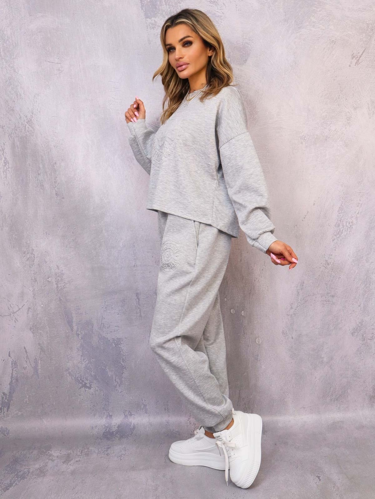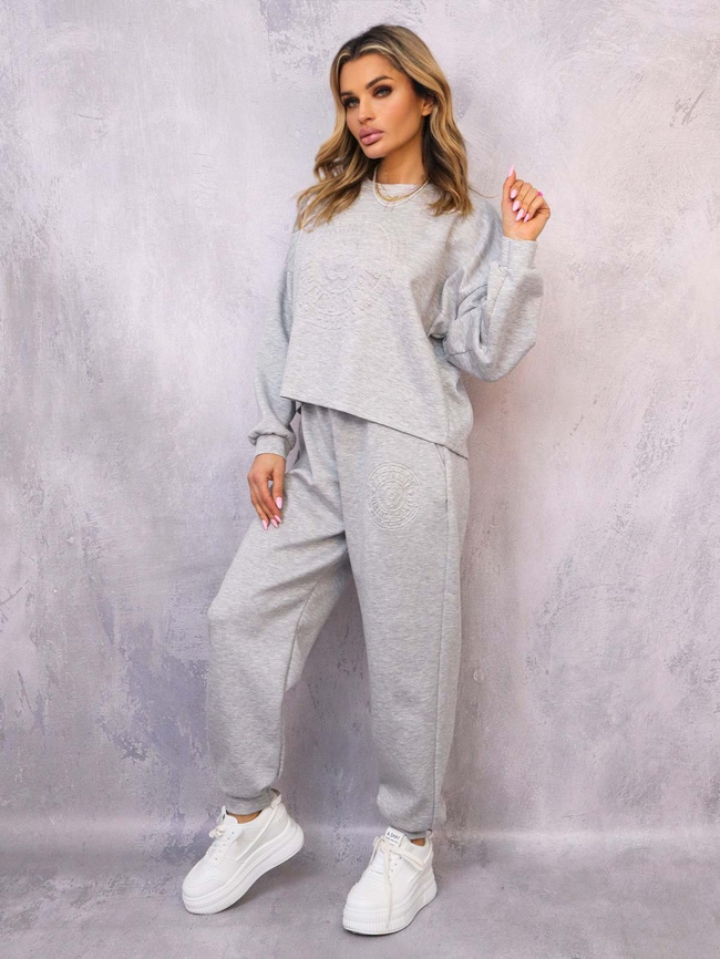 KOMPLET DRESOWY BLUZA Z WYTŁOCZONYM NADRUKIEM+ SPODNIE- SZARY