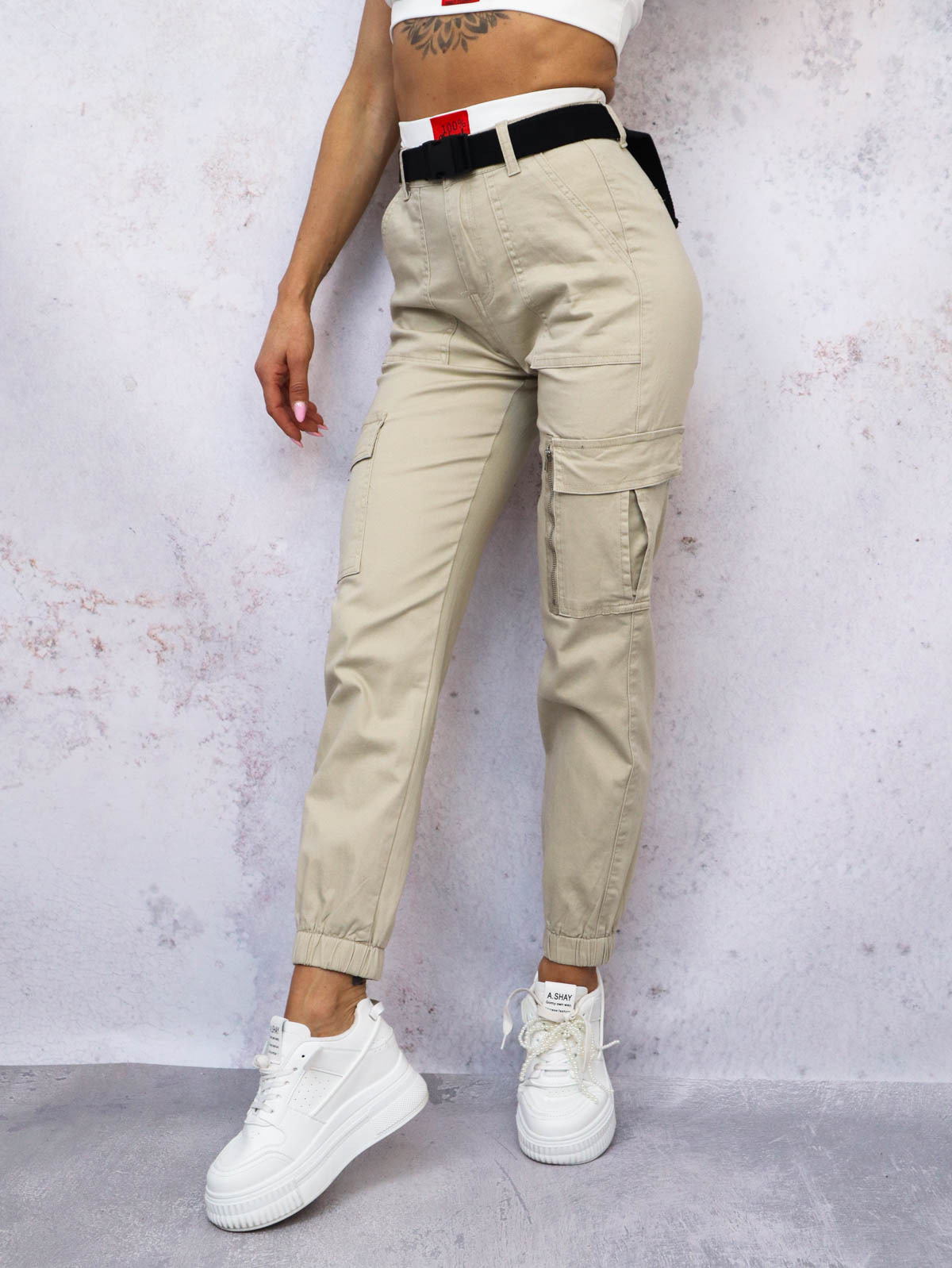 SPODNIE BOJÓWKI CARGO + PASEK- BEŻOWE