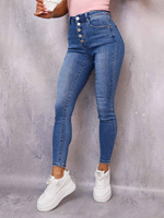 Jeansowe spodnie skinny z guzikami. Uszyte z wysokiej jakości, miękkiego i elastycznego materiału. Dzięki temu spodnie nie krępują ruchów i są bardzo wygodne. Wykończone wysokim stanem, zapinanym na guziki.