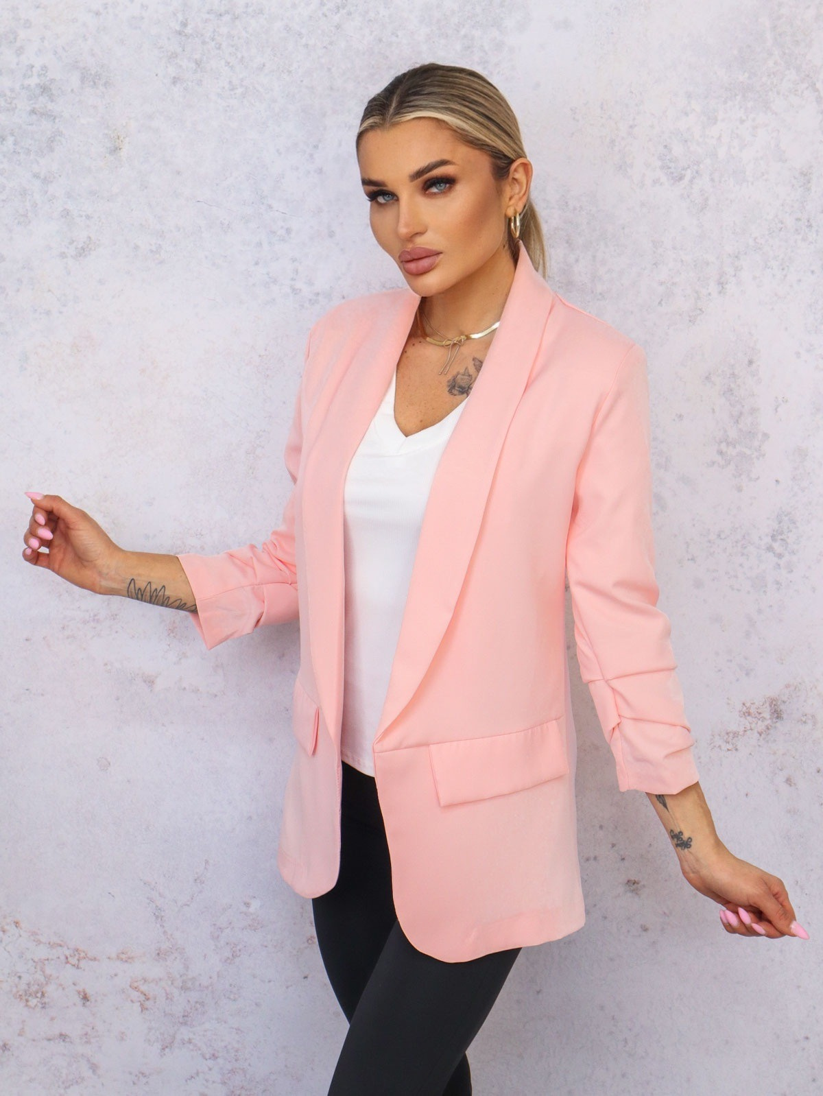 MARYNARKA BEZ ZAPIECIA Z MARSZCZONYMI RĘKAWAMI- MORELOWY