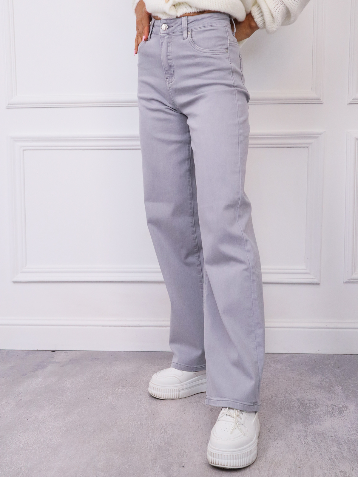 JASNOSZARE SPODNIE JEANSOWE Z SZEROKIMI NOGAWKAMI