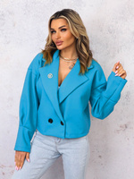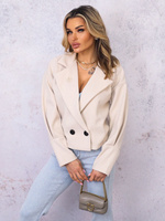 KRÓTKI PŁASZCZ Z KOŁNIERZEM I OZDOBNĄ BROSZKĄ- JASNOBEŻOWY