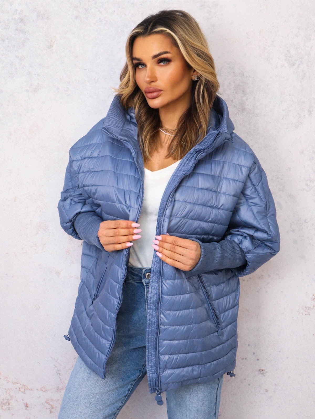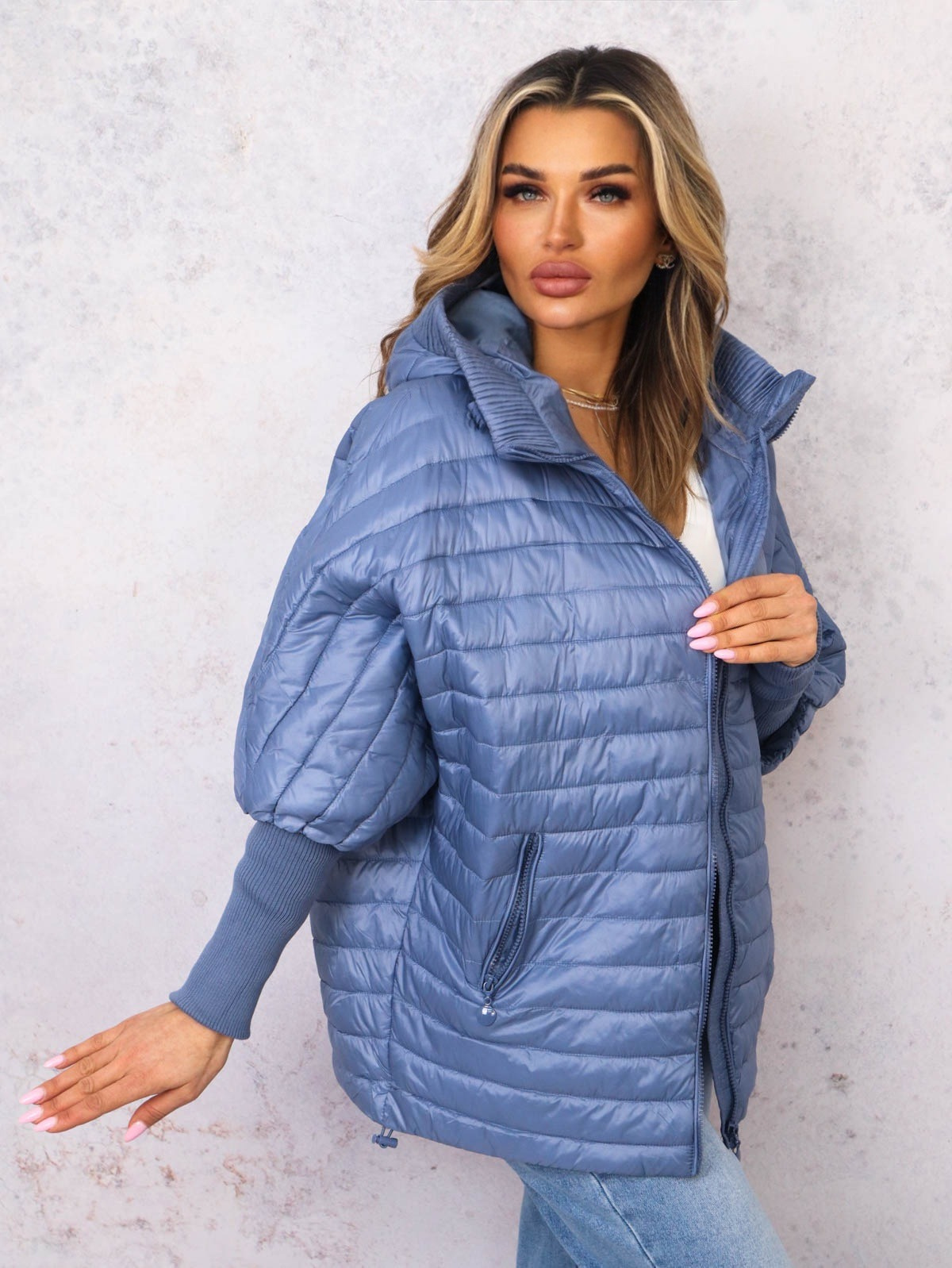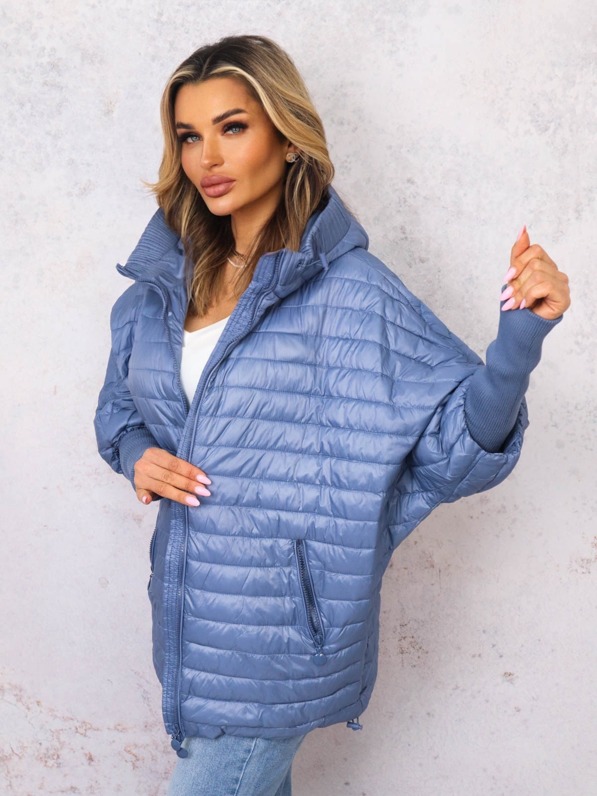 KURTKA PRZEJŚCIOWA O KROJU NIETOPERZA- NIEBIESKA