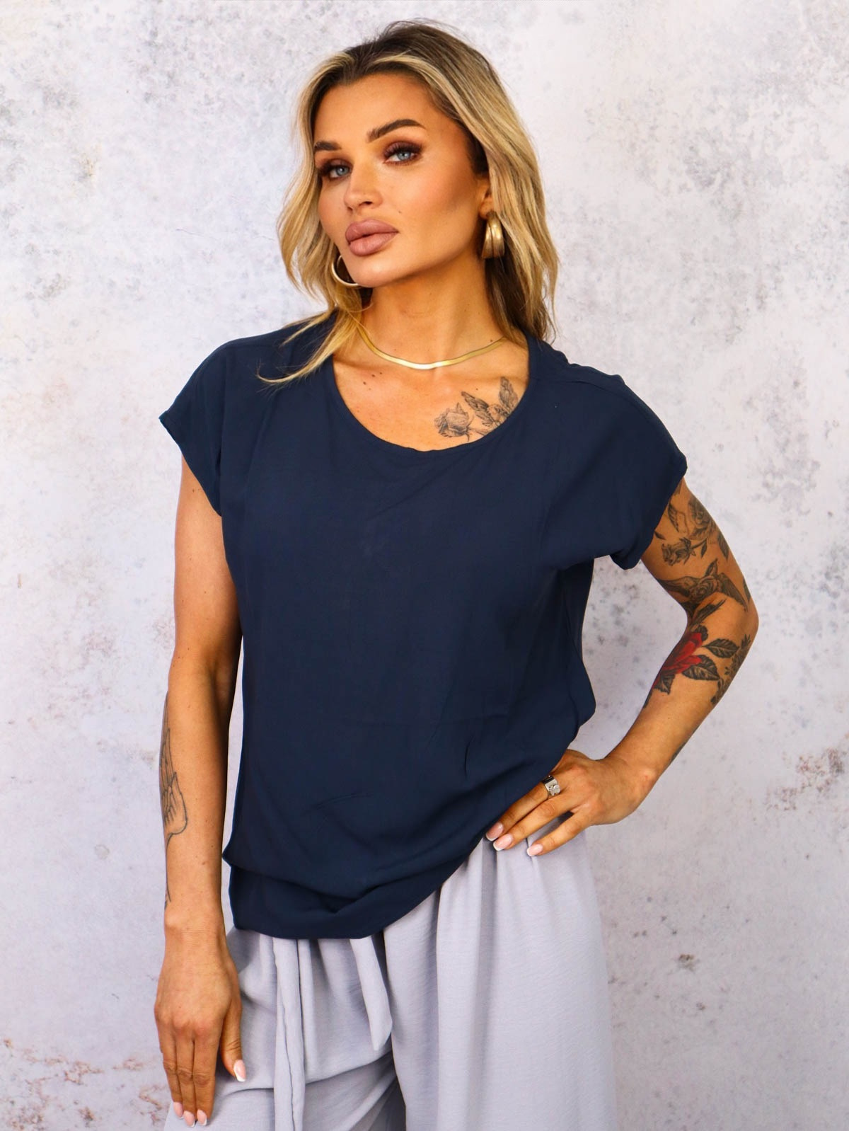ASYMETRYCZNY T-SHIRT OVERSIZE- GRANATOWY