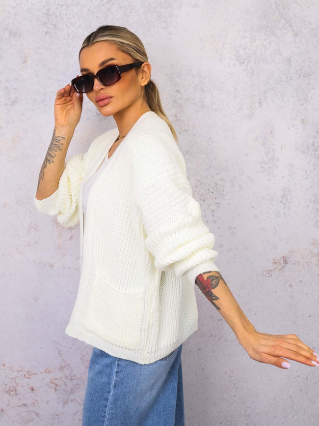 NARZUTA KARDIGAN DZIANINOWY Z KIESZENIAMI- BIAŁY