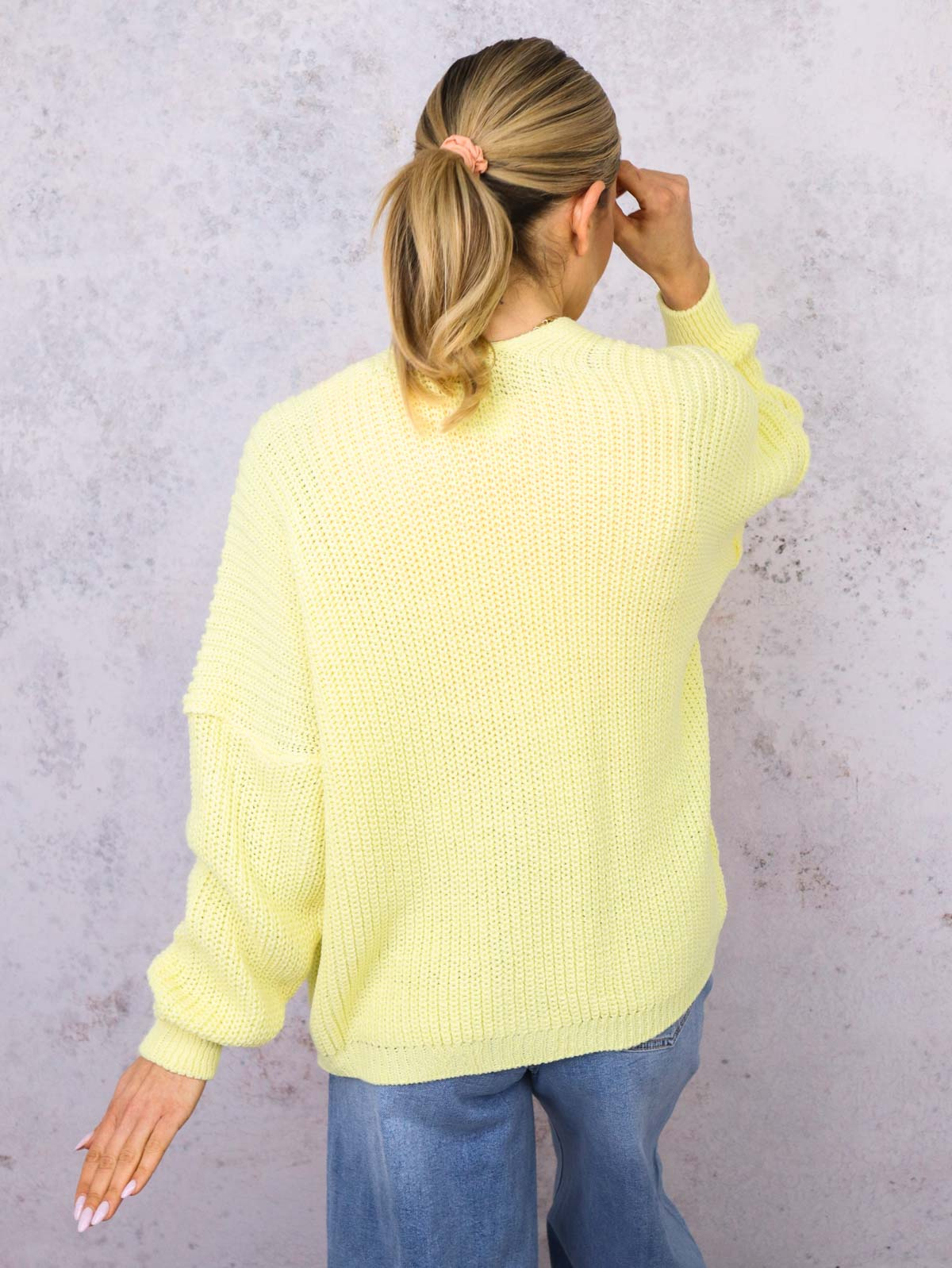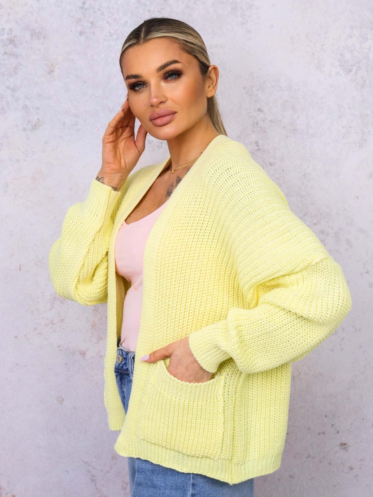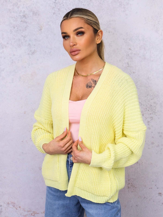 NARZUTA KARDIGAN DZIANINOWY Z KIESZENIAMI- ŻÓŁTY