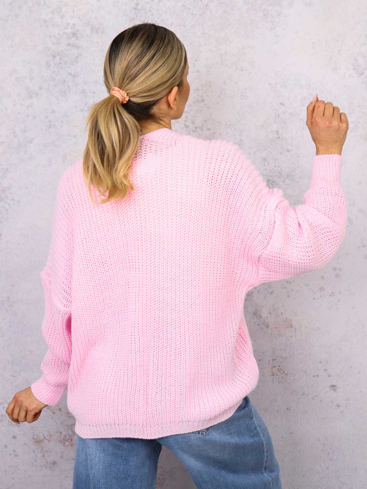 NARZUTA KARDIGAN DZIANINOWY Z KIESZENIAMI- JASNORÓŻOWY