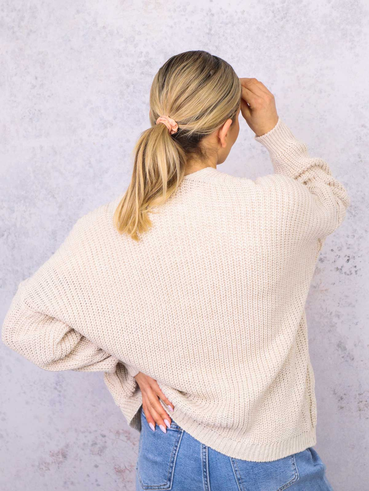 NARZUTA KARDIGAN DZIANINOWY Z KIESZENIAMI- BEŻOWY