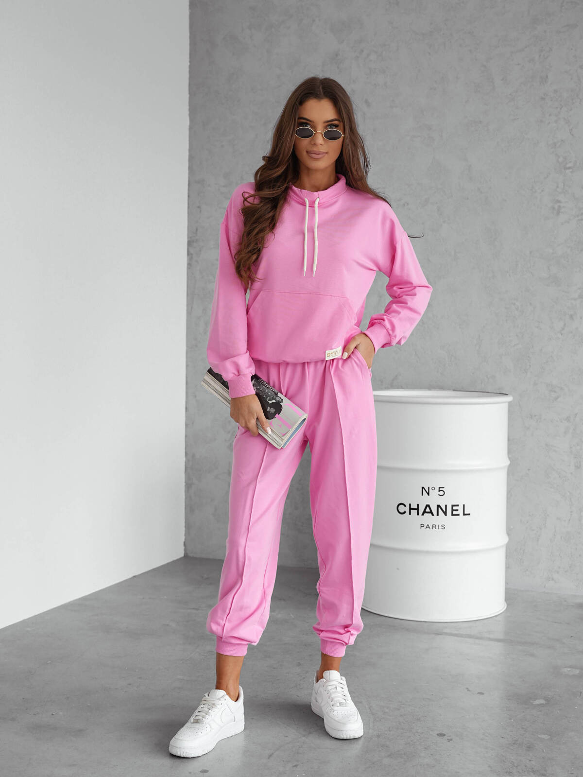 KOMPLET BAWEŁNIANY BLUZA Z SZNURKAMI+SPODNIE- RÓŻOWY