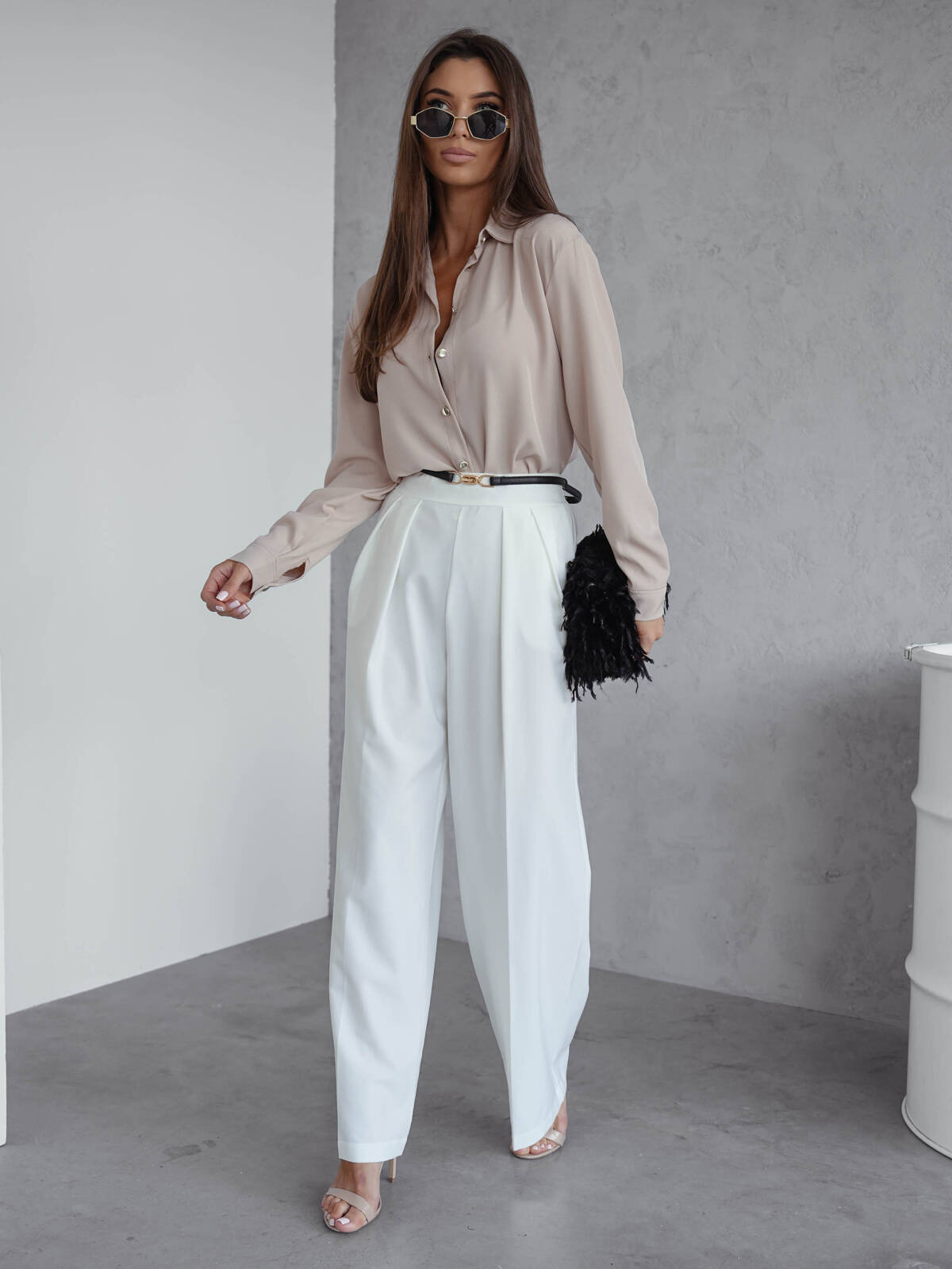 SPODNIE ELEGANCKIE MATERIAŁOWE Z KANTEM- ECRU