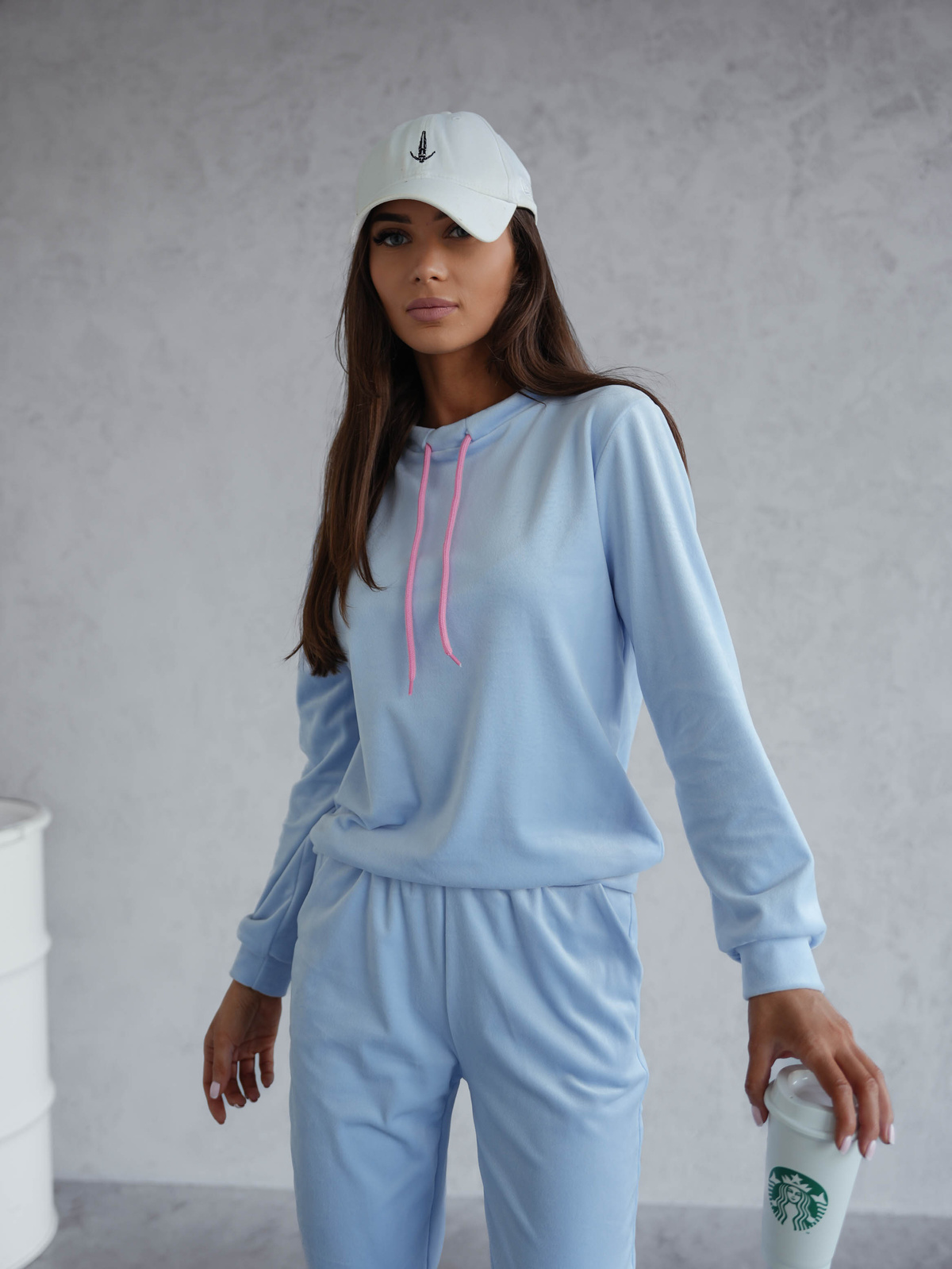 KOMPLET DRESOWY WELUROWY Z KONTRASTOWYMI SZNURKAMI- NIEBIESKI