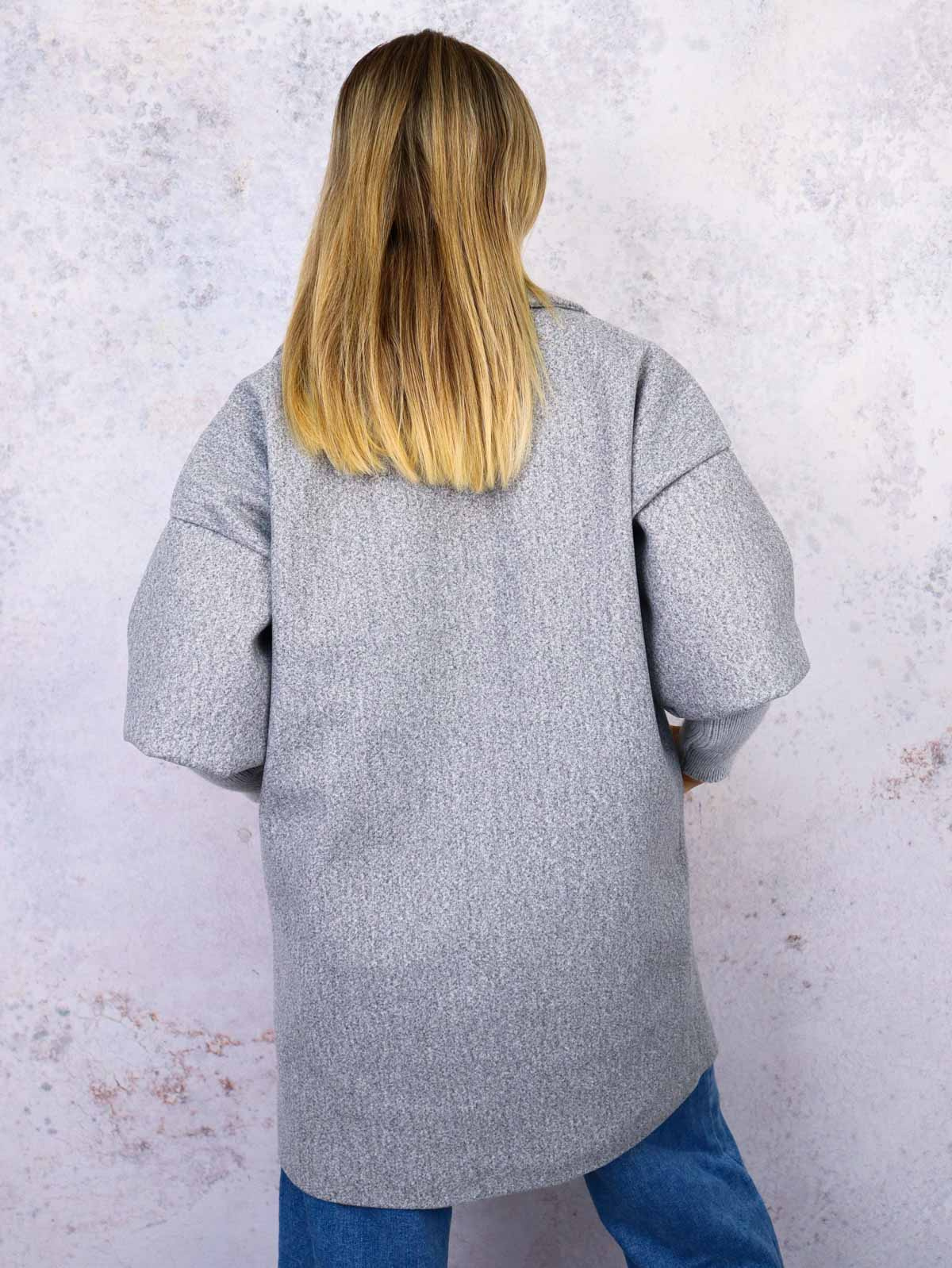 PŁASZCZ ZE SWETROWYMI RĘKAWAMI- SZARY